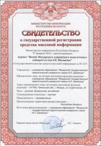 Научный журнал «Веснік Мазырскага дзяржаўнага педагагічнага ўніверсітэта імя І.П. Шамякіна»включён ВАК РБ в Перечень научных изданий Республики Беларусь для опубликования результатов диссертационных исследований по следующим рубрикам: