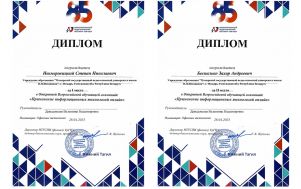 Очень хорошо проявили себя первокурсники. Так, в направлении «офисные технологии» Невмержицкий Степан (1 к. 1 гр.) был удостоен Диплома I степени, Беспалько Захар (1 к. 1 гр.) - Диплома II степени; в направлении «веб-технологии» Тарасюк Евгений (1 к. 2 гр.) также был удостоен Диплома I степени, а Поливач Сергей - Диплома II степени!