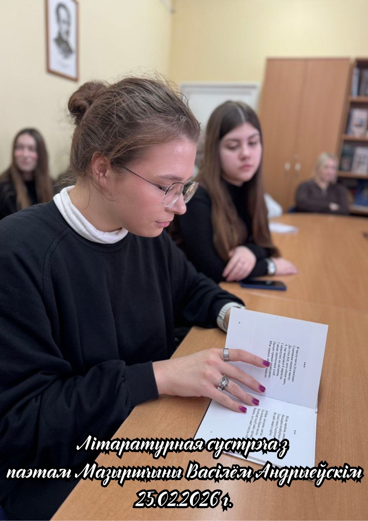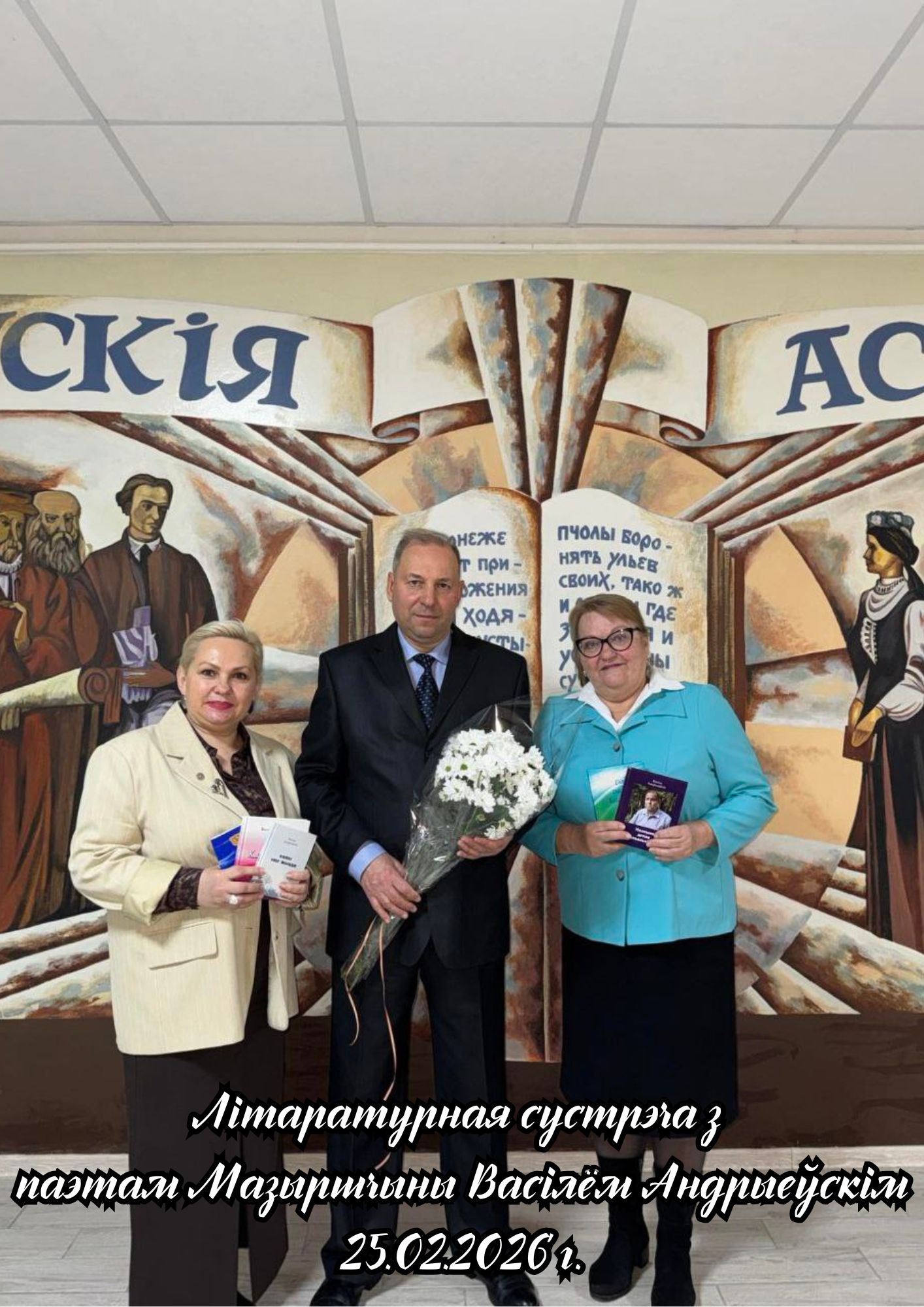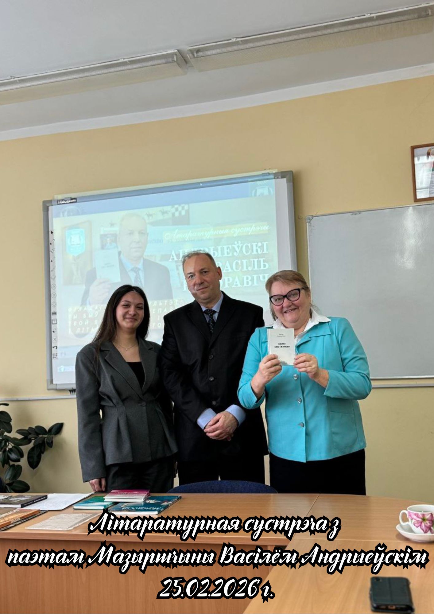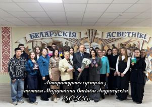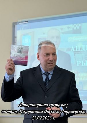 25.02.2026 на філалагічным факультэце адбылася Літаратурная сустрэча з таленавітым мазырскім паэтам Васілём Андрыеўскім, выпускніком факультэта 1989 года. Падчас сустрэчы студэнты і выкладчыкі прайшлі жыццёвымі і творчымі сцежкамі паэта, пазнаёміліся з уласнымі паэтычнымі зборнікамі Васіля Андрыеўскага, а таксама з калектыўнымі выданнямі, складальнікам і рэдактарам якіх ён з’яўляецца. Удзельнікі сустрэчы з задавальненнем пазнаёміліся з новай кнігай паэта «Колкі снег жыцця». У выкананні аўтара прагучалі вершы, прысвечаныя роднаму краю, яго людзям, непаўторнай прыродзе Мазырскага Палесся, універсітэту і роднаму факультэту. З асаблівай цікавасцю студэнты слухалі вершы нашага земляка на тэму кахання. На працягу сустрэчы паэт адказваў на шматлікія пытанні аўдыторыі.