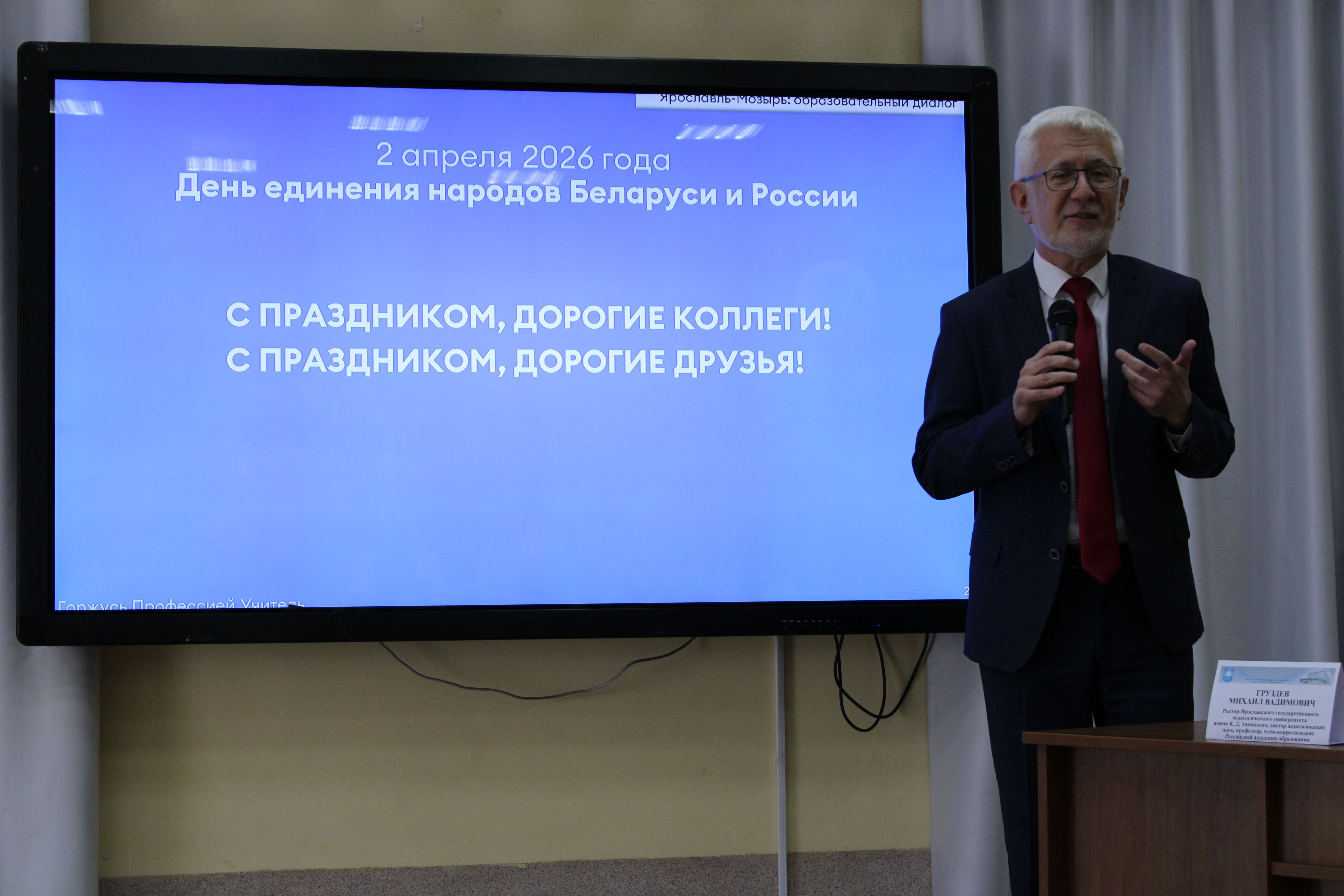 3 апреля 2026 года на базе Мозырского государственного педагогического университета имени И.П. Шамякина состоялась встреча с ректором Ярославского государственного педагогического университета им. К.Д. Ушинского, доктором педагогических наук, профессором, членом-корреспондентом Российской академии образования Михаилом Вадимовичем Груздевым.