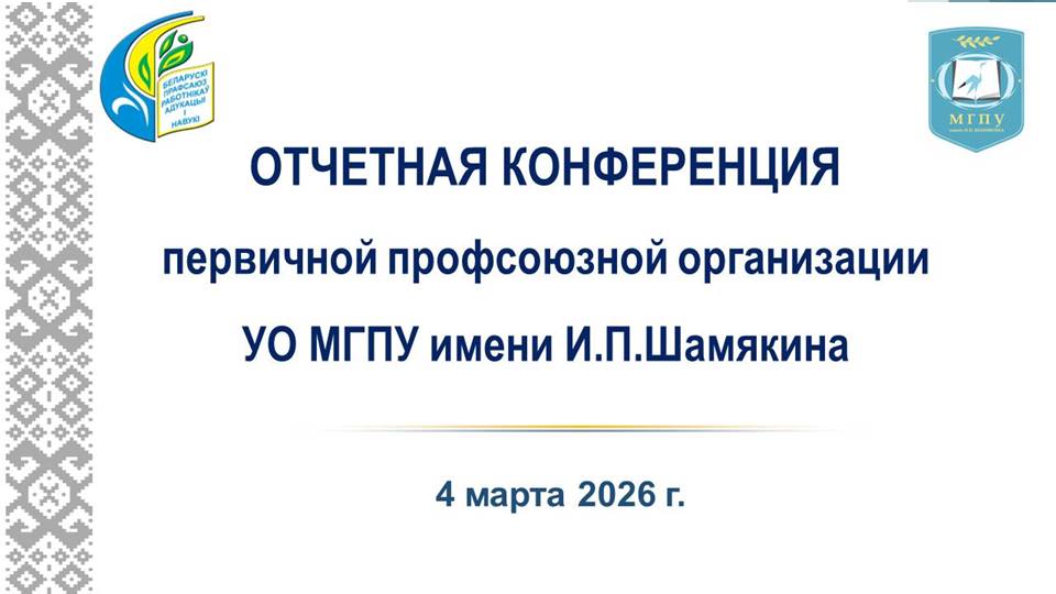 4 марта 2026 года состоялась отчетная конференция первичной профсоюзной организации УО «Мозырский государственный педагогический университет имени И.П.Шамякина». Председатель профкома Струков Виктор Викторович отразил все направления деятельности первичной профсоюзной организации за 2025 год и итоги выполнения коллективного договора за 2-е полугодие 2025 года. Подробно рассказал о работе с обращениями членов трудового коллектива, оказанной материальной помощи (в 2025 году на сумму 8233,50 рубль), организации и объемах мониторинга выполнения норм коллективного договора, а также о работе комиссий профсоюзного комитета. Особое внимание в отчете было уделено работе с ветеранами университета.