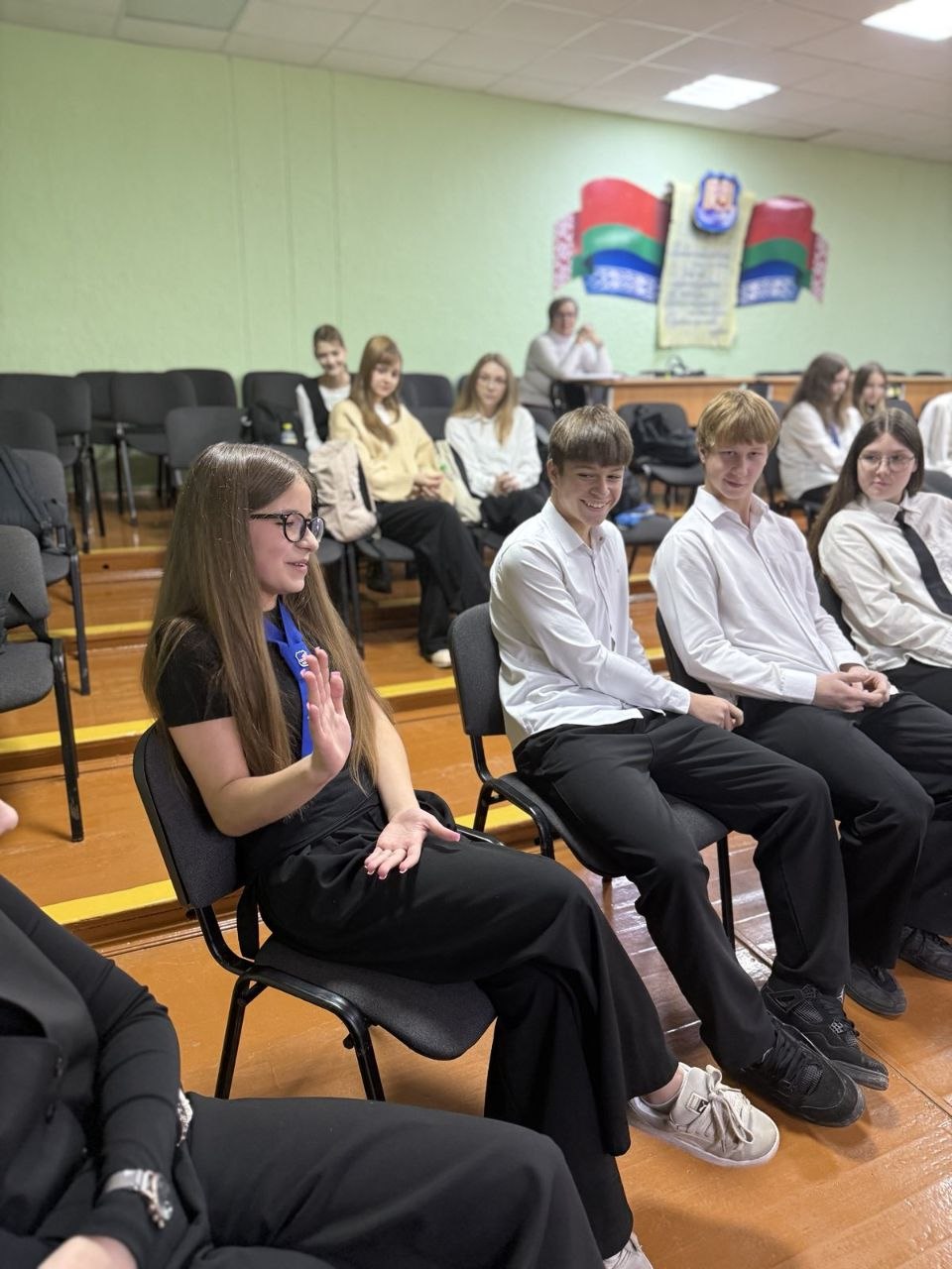Участники студенческого научно-исследовательского кружка «Педагогический театр “Личность”» посетили ГУО «Средняя школа № 15» г. Мозыря им. Борудунова Е.С. и провели коммуникативный тренинг с учащимися 8-х классов.