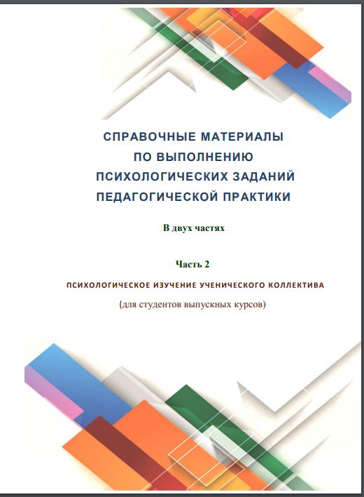 Справочные материалы по выполнению психологических заданий педагогической практики. В 2 ч. Ч. 2. Психологическое изучение ученического коллектива (для студентов выпускных курсов) / сост. : Л. Н. Иванова, Е. П. Дыгун. – Мозырь : МГПУ им. И. П. Шамякина, – 2019. – 38 с.