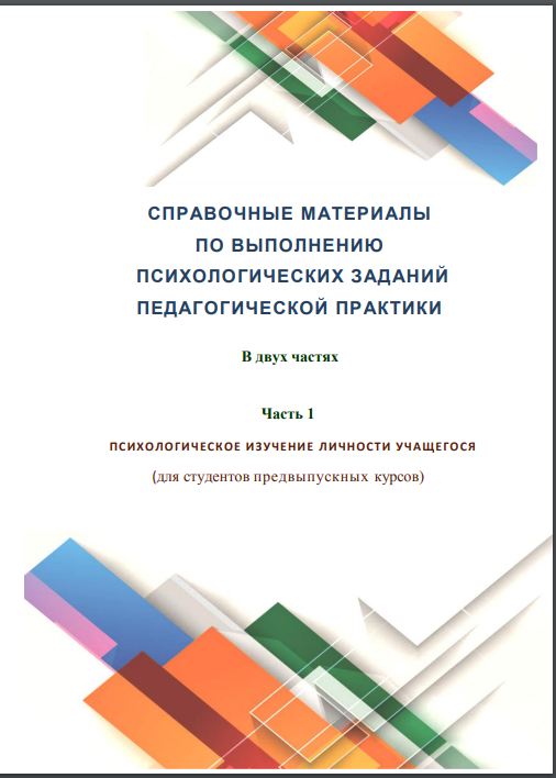 Справочные материалы по выполнению психологических заданий педагогической практики. В 2 ч. Ч. 1. Психологическое изучение личности учащегося (для студентов предвыпускных курсов) / сост. : Л. Н. Иванова, Е. П. Дыгун. – Мозырь : МГПУ им. И. П. Шамякина, – 2019. – с.
