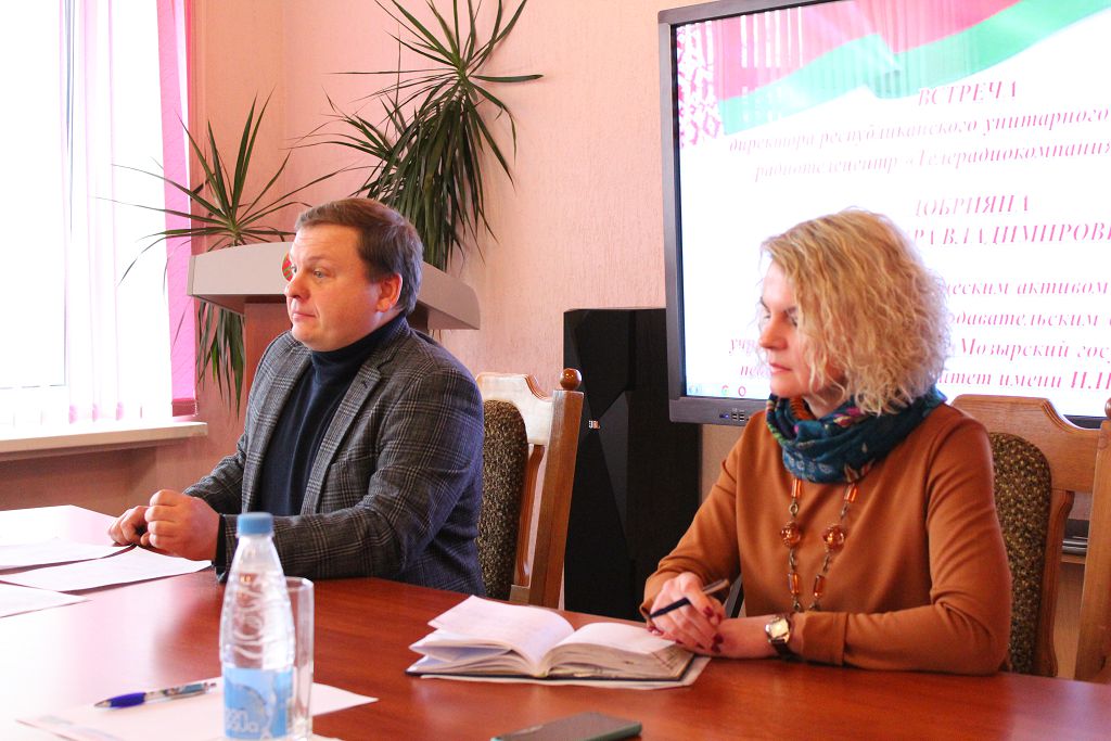 17.11.2022г. в рамках единого дня информирования (тема “Жилищно-коммунальное-хозяйство: перспективы развития”) была проведена встреча директора Республиканского унитарного предприятия радиотелецентр “ Телерадиокомпания Гомель” Добрияна Александра Владимировича со студенческим активом и пррфессорско-преподавательским составом учреждения образования “Мозырский государственнный педагогический университет им.И. П. Шамякина.”