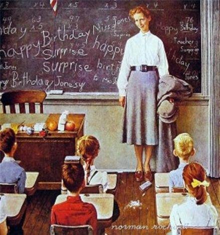 Норман Роквелл (1894—1978) День рождения учительницы Известный американский художник и иллюстратор Норман Роквелл, со свойственным ему мастерством рассказывает трогательную историю о дне рождения учительницы. Юные ученики, в спешке написав поздравления на доске, с трепетом упаковав подарки, встречают внезапно вошедшую в класс учительницу. Мисс уже довольно не молодая женщина, посвятившая свою жизнь школе и ученикам, с умилением и радостью принимает столь дорой для нее подарок — признание любимых учеников. |