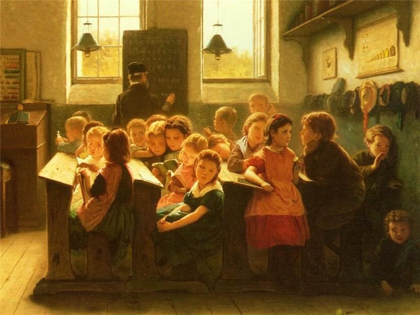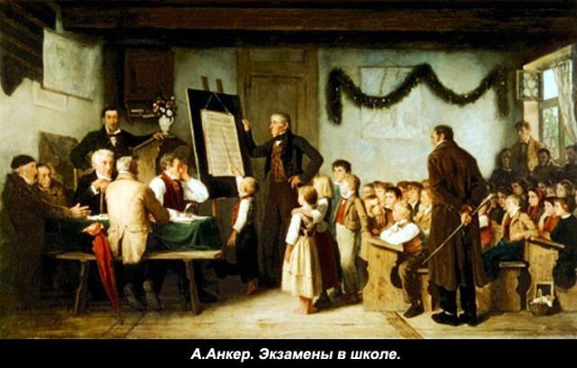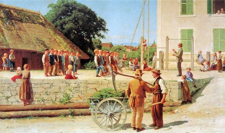 Самуэль Альбрехт (Альберт) Анкер (1831—1910) Альберт Самуил Анкер швейцарский художник и иллюстратор. Благодаря своим многочисленным картинам сцен швейцарской деревенской жизни 19-го века, был прозван швейцарским "народным художником". Искусствоведы рассматривают детский мир Анкера с точки зрения педагогических перемен в Европе в конце 19 века. Художник много изображает учеников и учениц с грифельной доской, тетрадью, письменными карандашами и учебниками. Он рассказывает также о том времени, когда образование было еще недоступно для крестьянских детей, их все воспринимали, как маленьких взрослых. Лишь в 1874 году Швейцарской конституцией было введено бесплатное школьное начальное и девятилетнее обязательное образование. Песталоцци в приюте. Песталоцци и дети. Экзамены в школе. Урок в сельской школе. Урок гимнастики в Инсе. Школьная прогулка |