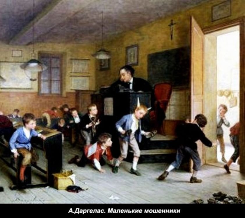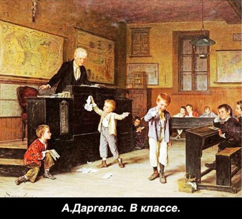 В классе Андре Анри Даргелас, французский художник, любивший наблюдать за жизнью детей, и изображать их в своих картинах. Группы счастливых мальчиков и девочек, юношеские игры на фоне сельских пейзажей, школьные занятия были любимыми сюжетами художника. |