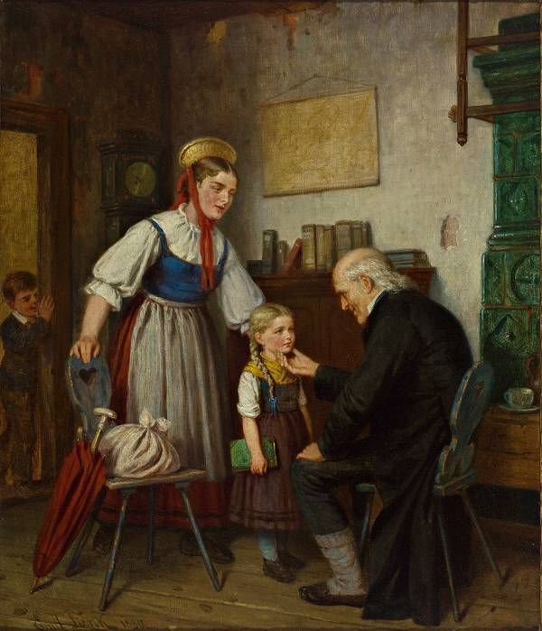 Emil Funk (1854—1864) Молодая женщина приводит дочь учителю сельской школы. 1880 г. |