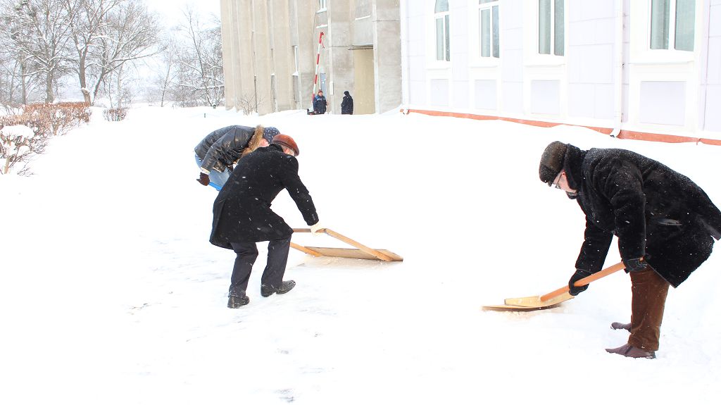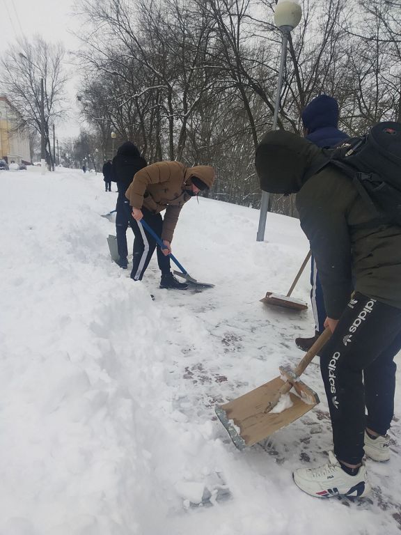 В связи с погодными условиями студенты и сотрудники университета вышли на улицу для оказания помощи по расчистке снега.