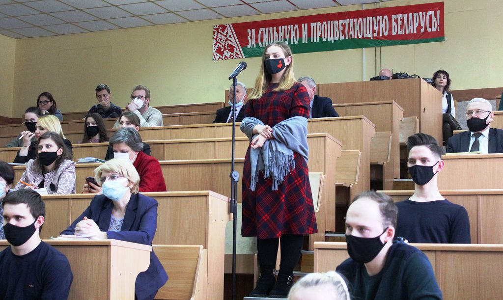 Сотрудниками и студентами университета были заданы вопросы о работе научного сообщества в решении освоения земель, пострадавших от Чернобыльской АЭС, о перспективах развития научных учреждений в нашей стране, интересовали присутствующих также предстоящие изменения в научно-исследовательской сфере. На все вопросы были даны компетентные разъяснения.