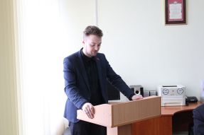 На мероприятии также присутствовал Лисовский Л.А., доцент кафедры специальной педагогики и методик дошкольного и начального образования, кандидат педагогических наук, доцент. Леонид Альбертович рассказал о своем жизненном пути и трудовой деятельности, а также передал Цвирко Владимиру Евгеньевичу, 1-му секретарю Мозырского районного комитета Коммунистической партии Беларуси, 55 томов исторического наследия – трудов В.И. Ульянова – Ленина.
