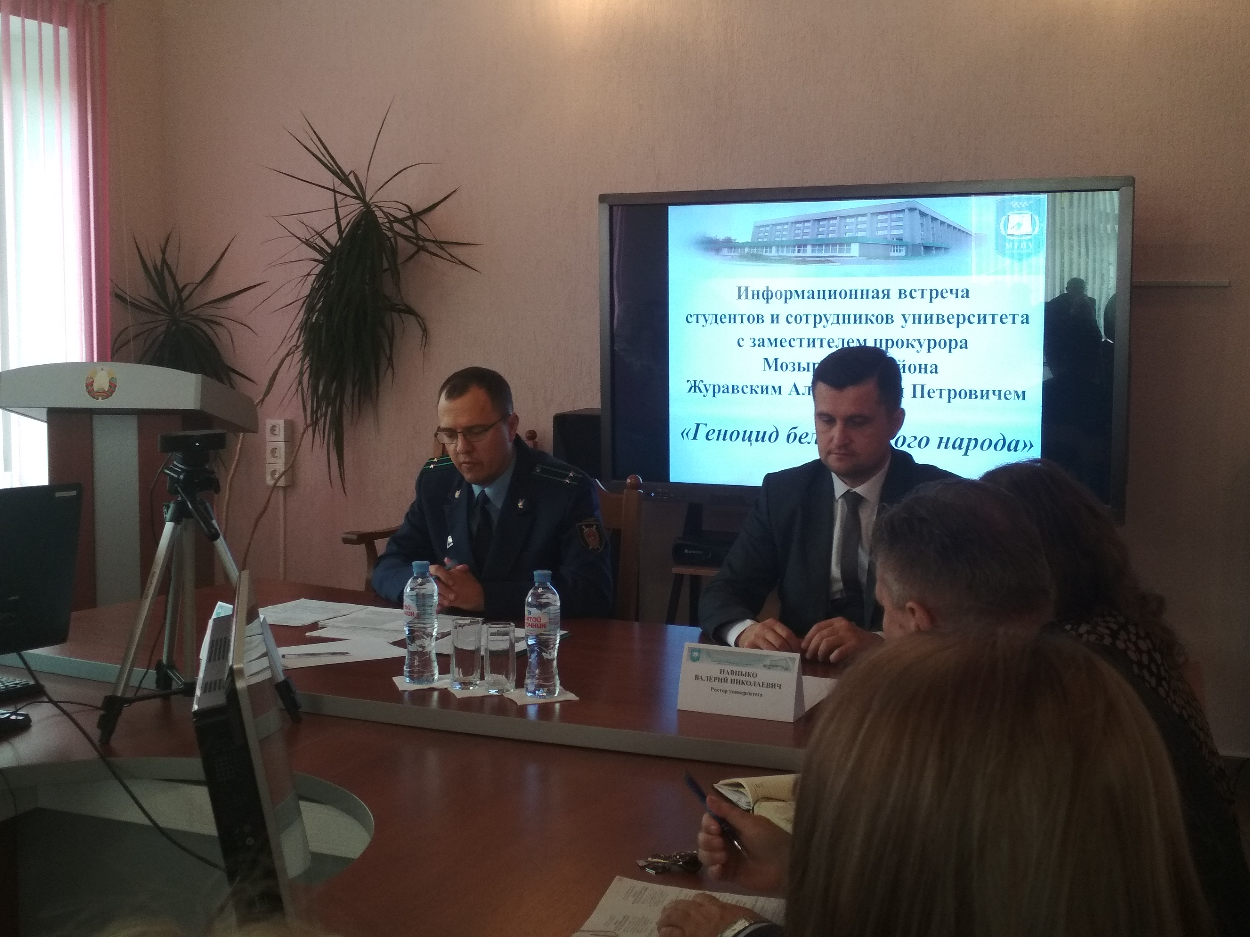 18 октября в университете состоялась информационная встреча студентов и сотрудников университета с заместителем прокурора Мозырского района Журавским Александром Петровичем.