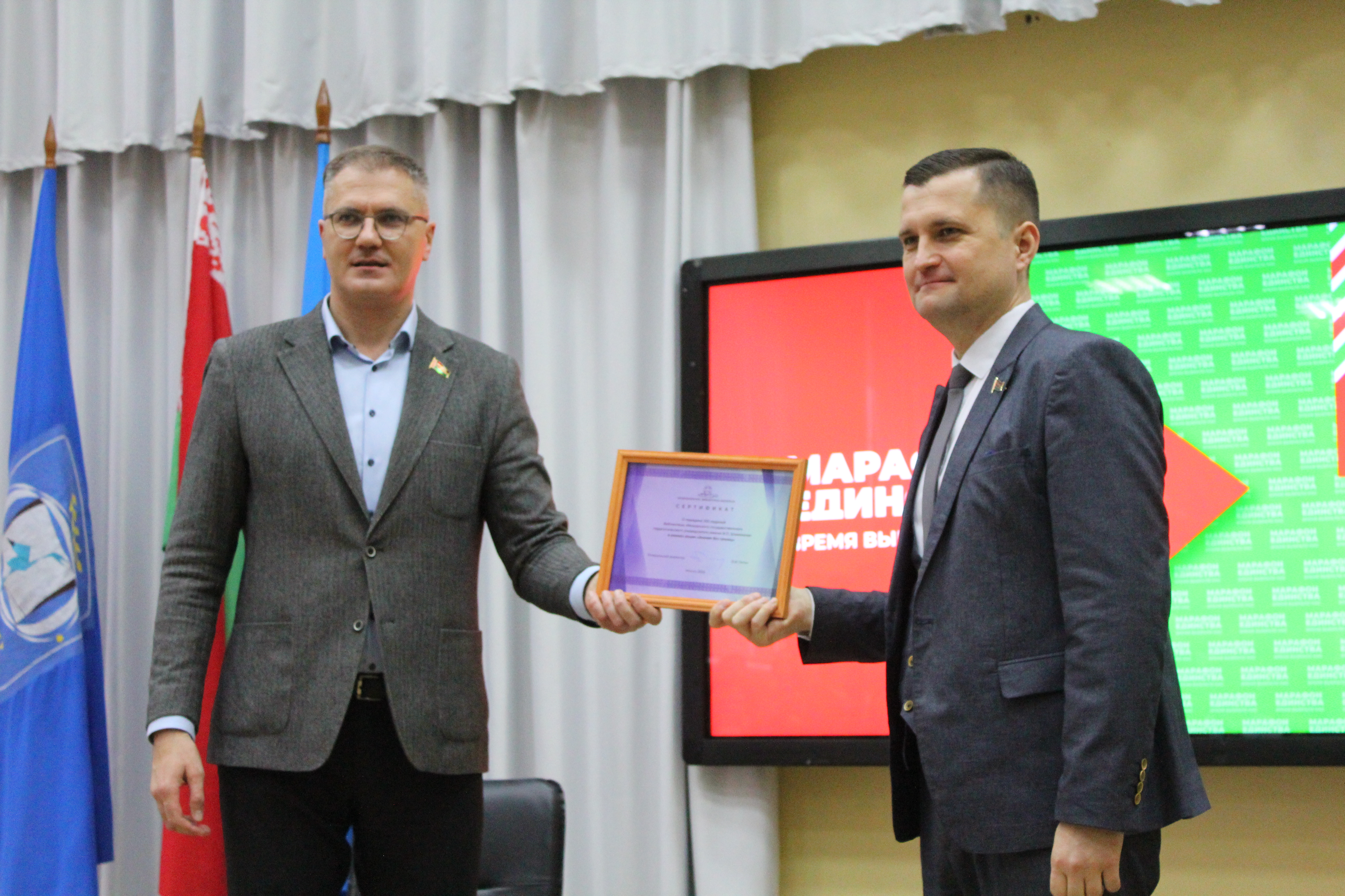 28 декабря во время «Марафона единства», который проходил в Мозыре, в стенах нашего университета прошла встреча трудового коллектива и студенческого актива университета с депутатом Палаты представителей Национального собрания Республики Беларусь, генеральным директором Национальной библиотеки Беларуси Вадимом Францевичем Гигиным.