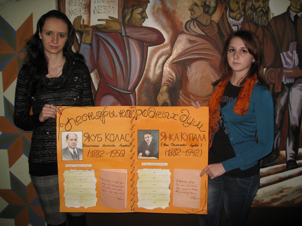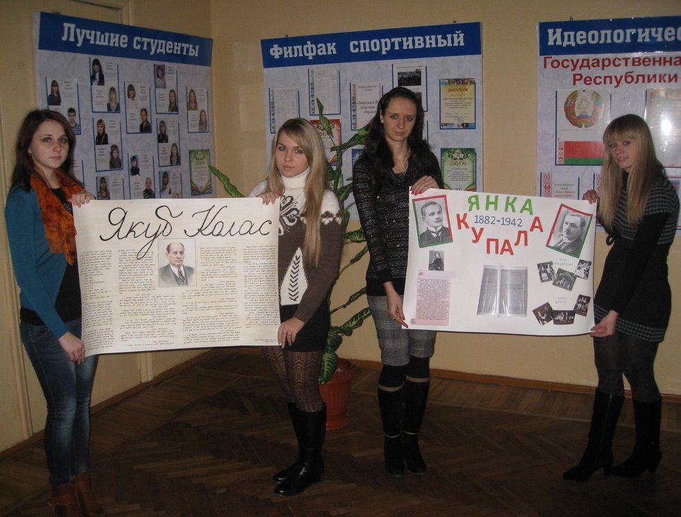 03.12.2012 на філалагічным факультэце адбыўся конкурс творчых работ студэнтаў, прысвечаны 130-годдзю з дня нараджэння Янкі Купалы і Якуба Коласа. Студэнтамі 3 курса філалагічнага факультэта спецыяльнасцей “Беларуская мова і літаратура. Руская мова і літаратура”, “Беларуская мова і літаратура. Сусветная і айчынная культура” былі прадстаўлены насценгазеты, якія змяшчалі багаты фактычны, літаратуразнаўчы матэрыял па творчасці класікаў нацыянальнай літаратуры.