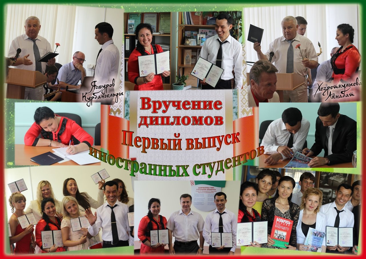 27 июня 2013 года в УО МГПУ им. И.П.Шамякина состоялось знаменательное событие – торжественное вручение дипломов о высшем образовании первым выпускникам из Республики Туркменистан, многократным победителям и призерам Олимпийских игр, дипломов с отличием талантливой молодежи вуза. Почетными гостями мероприятия были ректор университета, профессор Валентин Васильевич Валетов, председатель Мозырского районного Совета депутатов Сергей Александрович Гвоздь, Заслуженный тренер Республики Беларусь, главный тренер сборной РБ по гребле на байдарках и каноэ, почётный гражданин г. Мозыря, Лауреат премии «Белорусский спортивный Олимп» Владимир Владимирович Шантарович, руководство университета в лице проректоров, деканов, руководителей структурных подразделений.