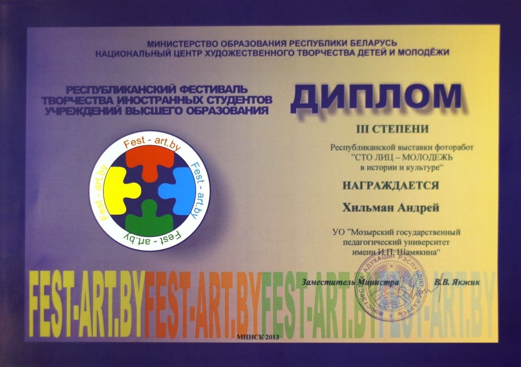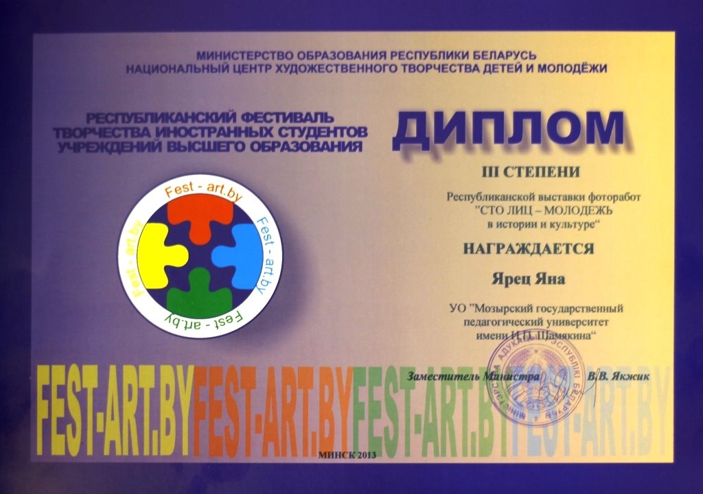 Для участия в одном из конкурсов фестиваля - «СТО ЛИЦ – молодежь в истории и культуре», были отправлены три фотоработы. Выставка фоторабот состоялась 12 ноября накануне Международного дня студента в историческом центре столицы – в стенах Городской ратуши, где и был дан старт фестивалю.