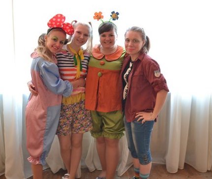 Ведущими программы были клоуны Хуба (Корзун Виктория, студентка факультета дошкольного и начального образования) и Буба (Наталья Намоченко, студентка факультета дошкольного и начального образования), которые закружили детей в хороводе веселья и праздничного настроения, подарили улыбки, а также продемонстрировали мастер-классы по твистингу и детскому боди-арту.