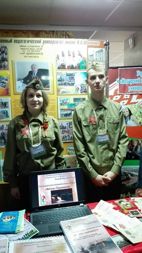 – гражданско-патриотический проект «Воіны Перамогі» (проект представляли студенты филологического факультета – Карпова Анна, Карпова Мария, Воднев Антон, Латышев Кирилл);