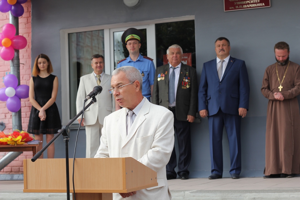 С приветственным словом и поздравлениями к присутствующим обратился ректор университета, доктор биологических наук, профессор, Заслуженный работник образования Республики Беларусь Валентин Васильевич Валетов. Валентин Васильевич поздравил педагогический коллектив с началом учебного года, призвал студентов уже с первой лекции с энтузиазмом и настойчивостью постигать секреты профессионального мастерства, активно участвовать в научной, культурной, спортивной