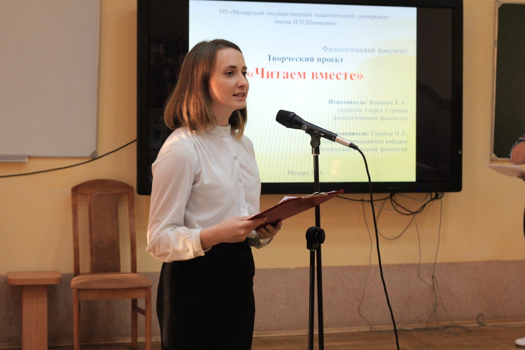 С приветственным словом выступила начальник отдела по воспитательной работе с молодежью Светлана Васильевна Матвеева, а также поздравила присутствующих с Международным днем студента. Участники выступали и представляли себя, свои способности в четырех конкурсах: «Портфолио», «Проект ГОДА», конкурс ораторского мастерства «Моя специальность – моя гарантия будущего», творческий конкурс «Молодая Беларусь».