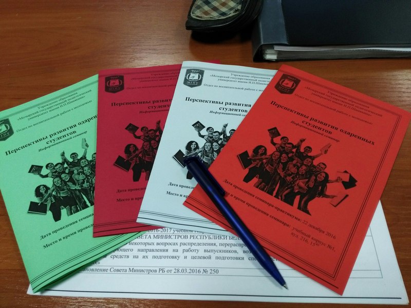 Поддержка одаренной и талантливой молодежи является в Беларуси делом государственной важности, так как достояние народа определяется его творческим потенциалом. В связи с этим на семинаре были освещены вопросы научно-методического сопровождения работы в университете с одаренными и талантливыми студентами. Студенты были ознакомлены с Указами Президента Республики Беларусь по созданию специального фонда Президента Республики Беларусь по социальной поддержке одаренных учащихся и студентов и специального фонда Президента Республики Беларусь по поддержке талантливой молодежи; с основными положениями социально-экономической защиты интересов студентов, а также подробно узнали о том, что такое перспективный кадровый резерв и что нужно для того, чтобы быть в него включенным.