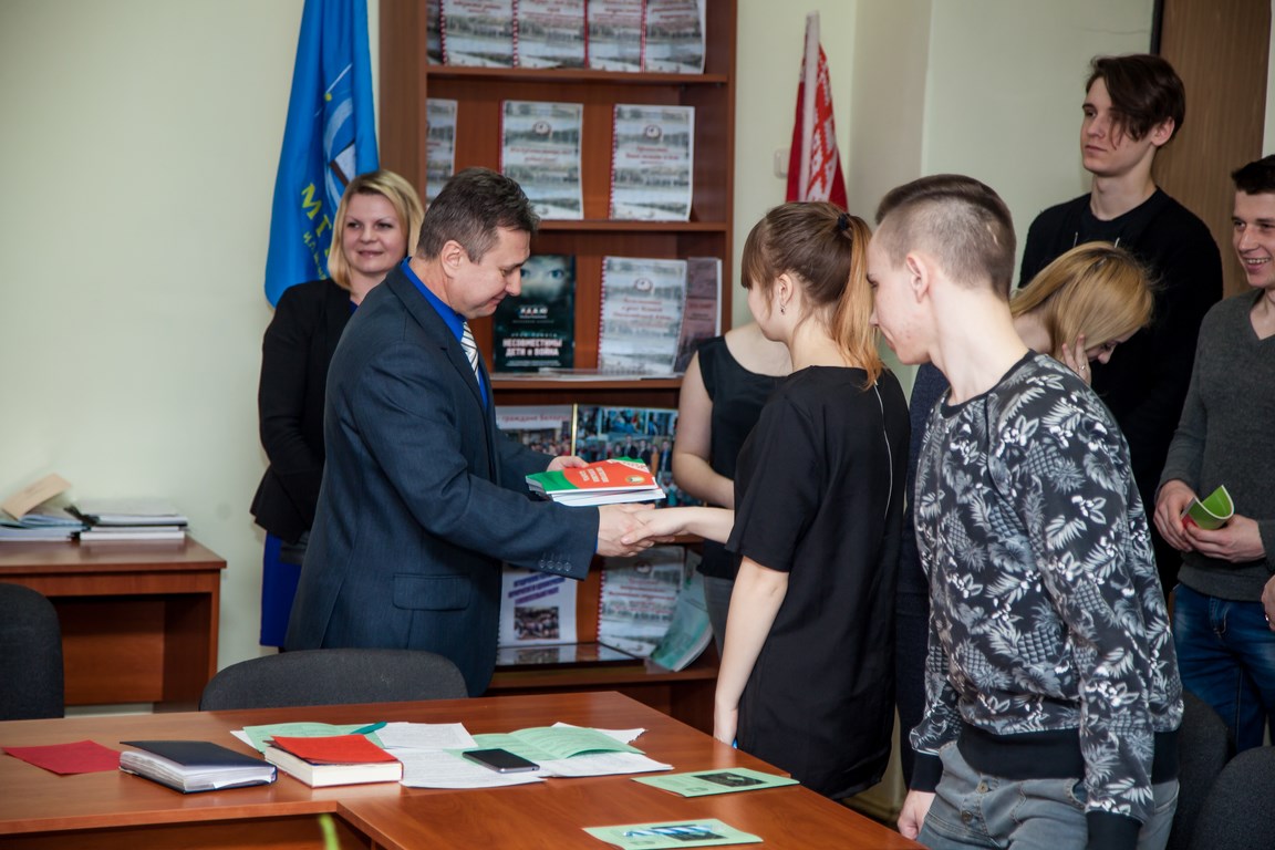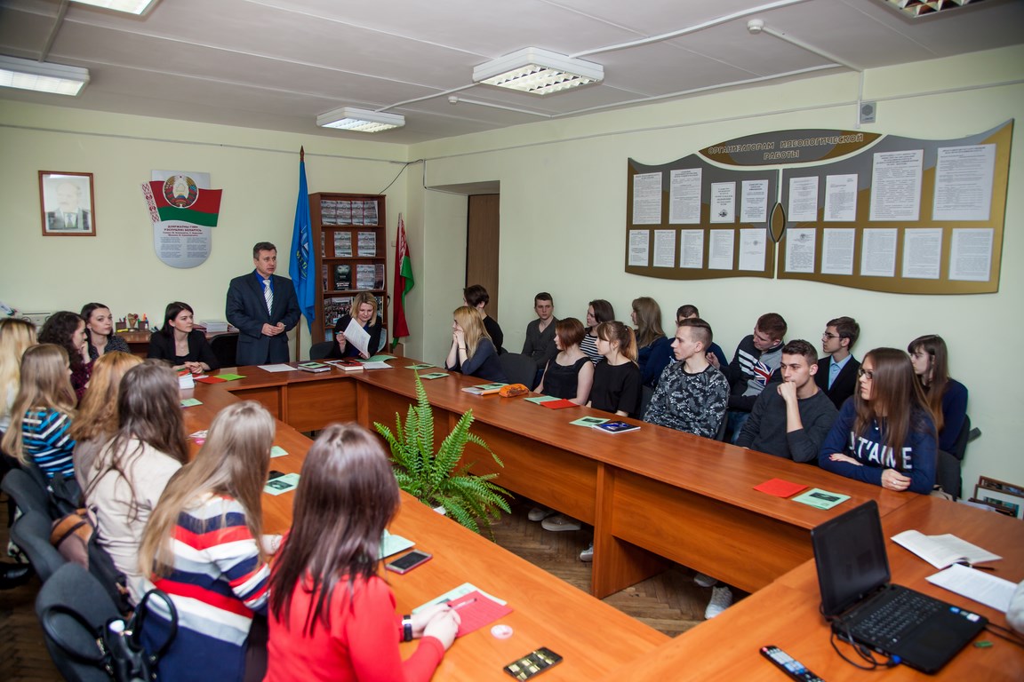 В рамках круглого стола студенты были ознакомлены с особенностями конституционного устройства Республики Беларусь и историей его развития. С приветственным словом ко всем присутствующим обратился проректор по воспитательной работе С.Н. Щур, который подчеркнул, что каждый должен иметь активную гражданскую позицию и знать свои права и обязанности, закрепленные в основном законодательном документе нашей страны.