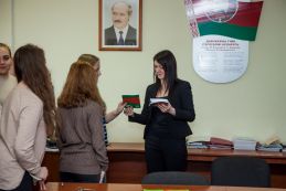 Заседание круглого стола завершила Д.В. Грамович, заведующий отделом идеологической работы, культуры и по делам молодежи Мозырского РИК, которая поздравила всех гостей с праздником и вручила студентам нашего университета Конституции Республики Беларусь.