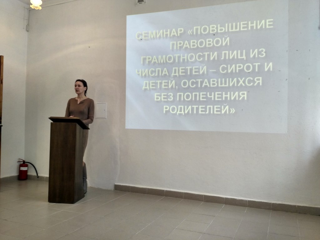 13 апреля на базе Территориального центра социального обслуживания населения Мозырского района прошел семинар «Повышение правовой грамотности лиц из числа детей-сирот и детей, оставшихся без попечения родителей в возрасте от 18 до 23 лет», основной задачей которого стало информирование обучающихся о мерах, направленных на защиту прав человека и его законных интересов.