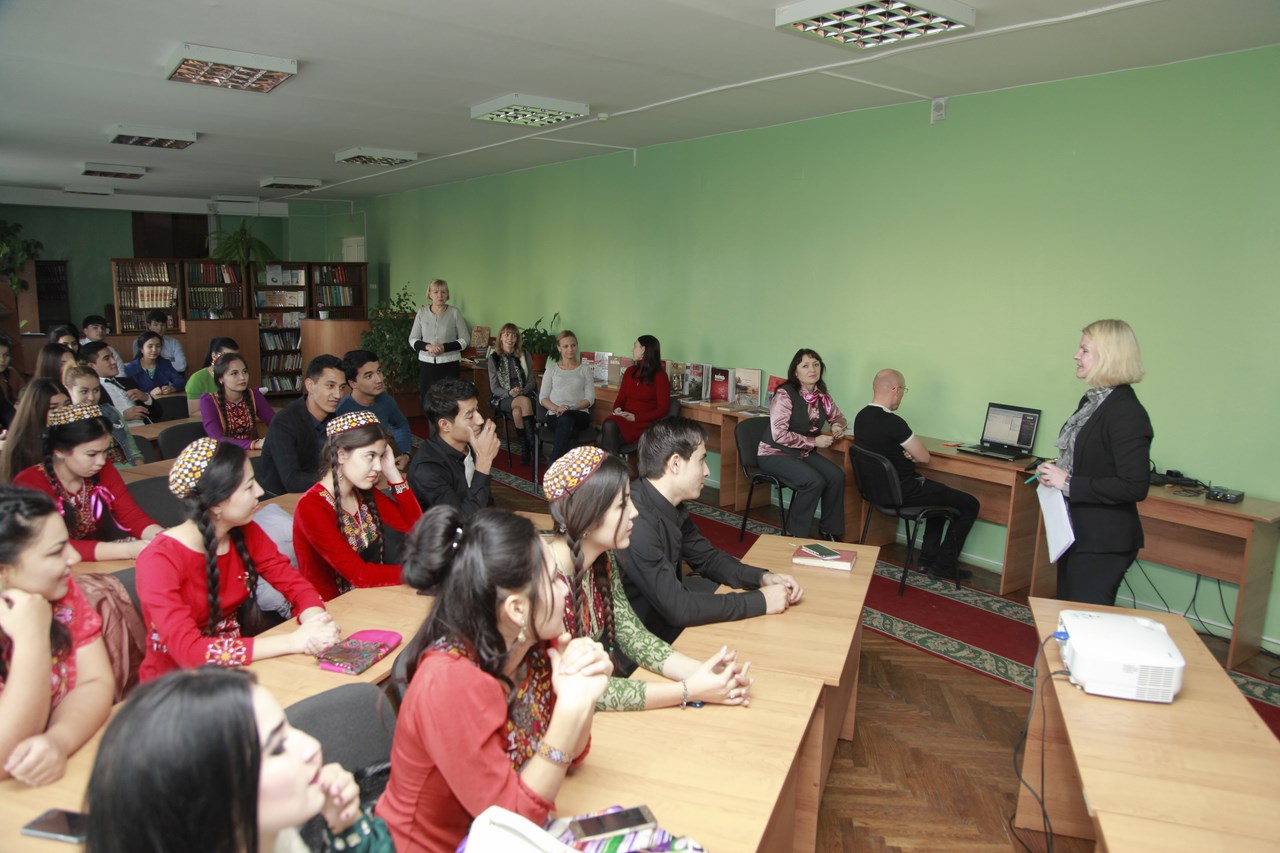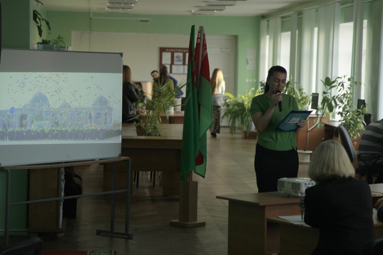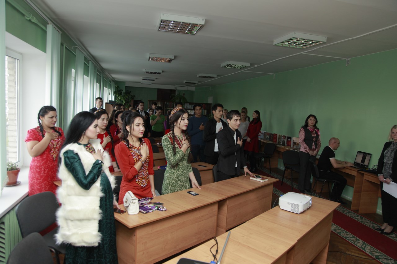 В мероприятии приняла участие Елена Федоровна Бурлаченко, заведующая читальным залом, которая поздравила иностранных студентов с Днем Независимости Республики Туркменистан и провела беседу о воинах-туркменистанцах, которые воевали и погибли на белорусской земле во время Великой Отечественной войны. Подчеркнула, что несмотря на 26-летнюю историю Независимости двух суверенных государств Беларусь и Туркменистан имеют общую историю, опыт доброго соседства и взаимовыгодного сотрудничества.