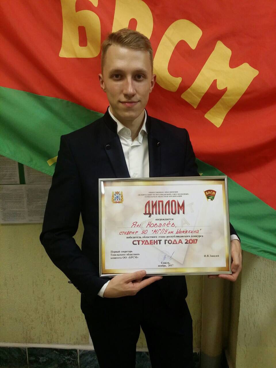 17-1-116 ноября в Гомельской городском театре молодежи состоялся областной этап республиканского конкурса «Студент года 2017».  УО «Мозырский государственный педагогический университет им. И.П. Шамякина» представлял студент филологического факультета, специальности "Иностранные языки (английский, немецкий)", активист ПО ОО «БРСМ», талантливый, артистичный, креативный, интеллектуальный  ЯН КОВАЛЕВ.