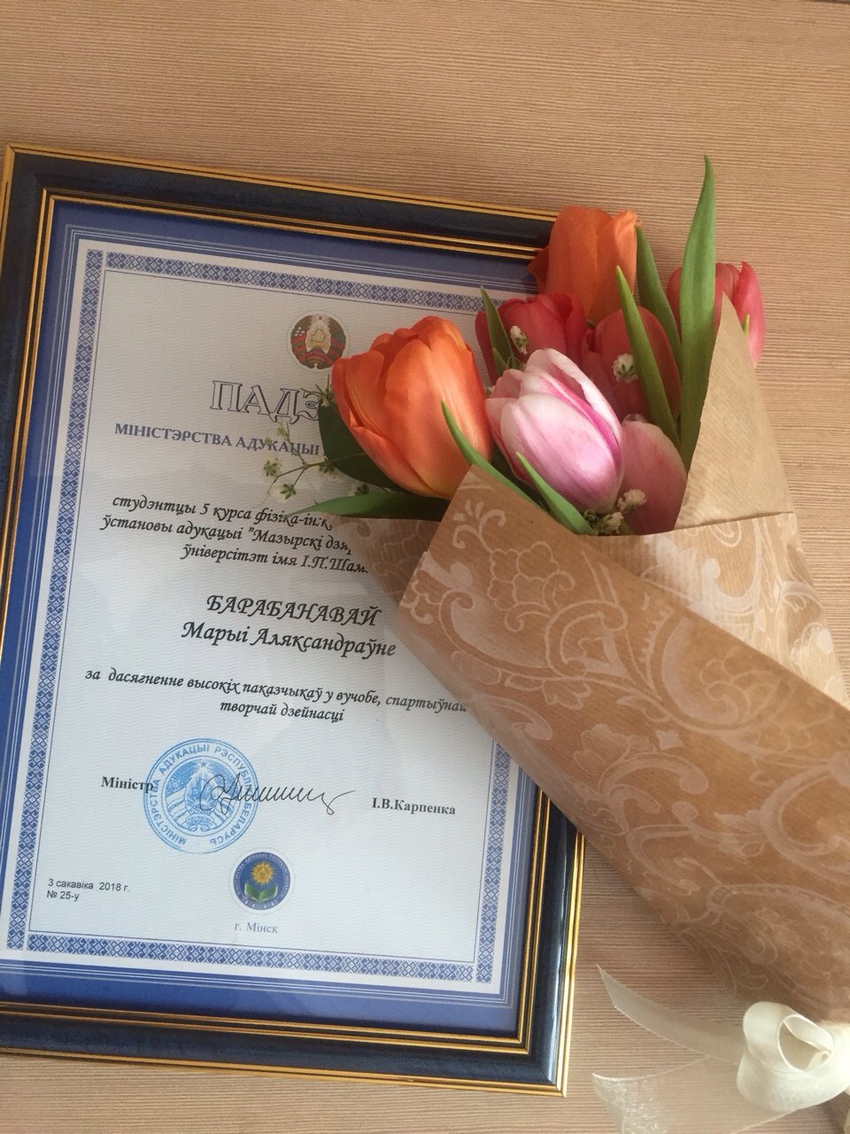 6 марта 2018 года в преддверии Международного женского дня в учреждении образования «Белорусский государственный педагогический университет имени Максима Танка» состоялась встреча Министра образования Республики Беларусь Игоря Васильевича Карпенко со студентками учреждений высшего образования Республики Беларусь. Мозырский государственный педагогический университет имени И.П. Шамякина на встрече представляла студентка 5 курса физико-инженерного факультета Барабанова Мария.