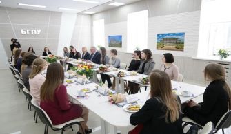 Продолжением встречи стала познавательная экскурсия по БГПУ, в ходе которой присутствующие познакомились с вековой историей педуниверситета, посетили Республиканский ресурсный центр образовательной робототехники и зал редкой книги.