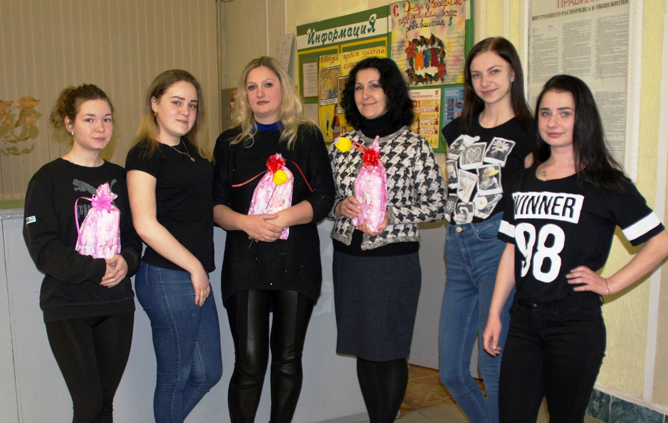 В канун Международного женского дня студенческий актив общежития №3 провел акцию «От всей души!». Студенты изготовили своими руками красивые праздничные тюльпаны и поздравили всех женщин, работающих в общежитии, которые создают уют и тепло, охраняют покой студентов, следят за дисциплиной и порядком.