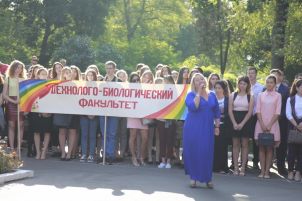 С приветственным словом и поздравлениями к присутствующим обратился ректор университета, Заслуженный работник образования, доктор биологических наук, Почетный профессор университета В.В.Валетов. Валентин Васильевич поздравил педагогический коллектив с началом учебного года, призвал студентов с энтузиазмом и настойчивостью постигать секреты профессионального мастерства, активно участвовать в научной, культурной и спортивной жизни университета.