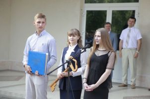 По традиции первокурсникам были вручены символы студенческой жизни: Ключ знаний и Студенческий билет. Студентка 1 курса филологического факультета Татьяна Большакова, набравшая 323 балла, приняла эти символы студенческой жизни из рук председателя студенческого самоуправления университета Мишура Дианы и от лица всех первокурсников пообещала пополнять копилку культурных, научных и спортивных достижений студентов УО МГПУ им.И.П.Шамякина.