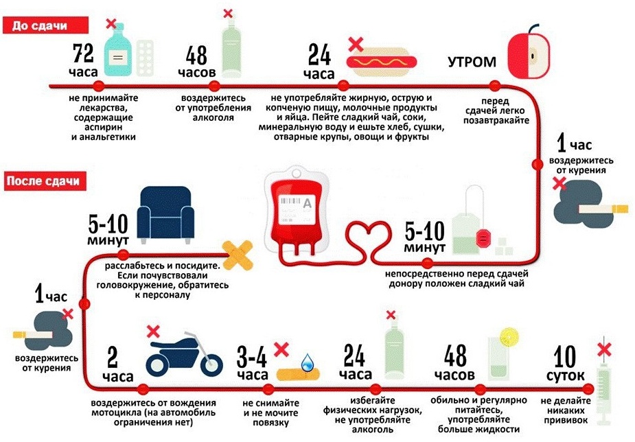 - подготовленный и отдохнувший человек хорошо переносит донацию;