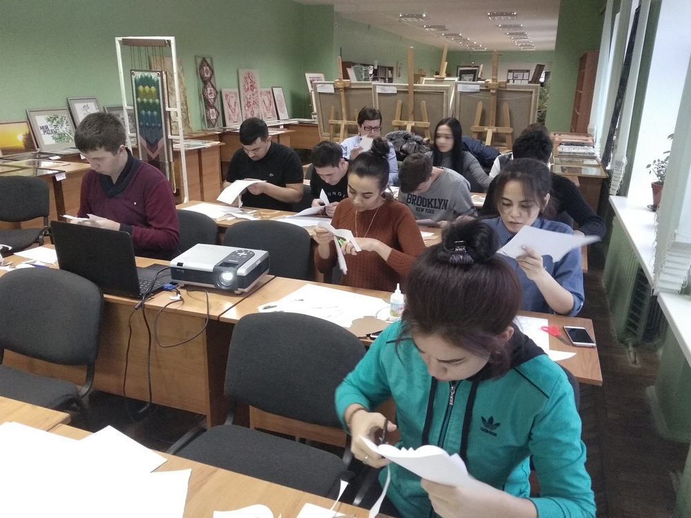 Студенты под руководством профессионального педагога делали бумажных голубей. Как известно, голуби – символ мира.