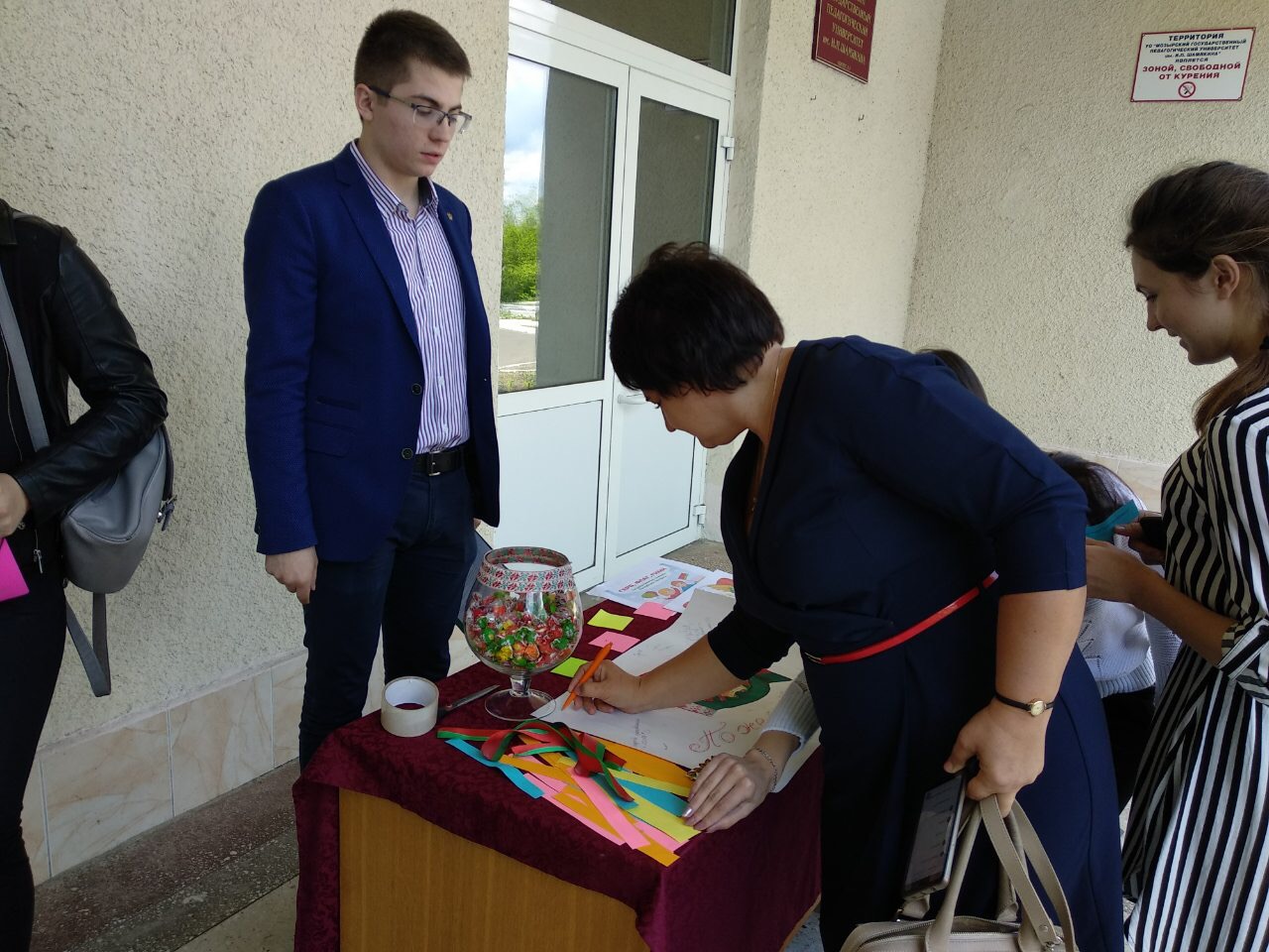 В связи с этой праздничной датой в нашем университете состоялась интеллектуальная викторина-акция, приуроченная ко Дню Государственного герба и Государственного флага Республики Беларусь. Студенты отвечали на вопросы, связанные с государственной символикой нашей страны, а также каждый желающий мог оставить на стилизованном плакате пожелания родной стране.