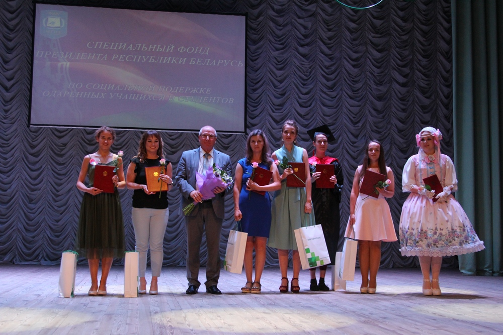 В этом году было вручено 7 свидетельств специального фонда Президента Республики Беларусь по социальной поддержке одаренных учащихся и студентов, 17 дипломов с отличием, 31 диплом магистра и 14 грамот за активное участие в общественной жизни университета белорусским и иностранным обучающимся.