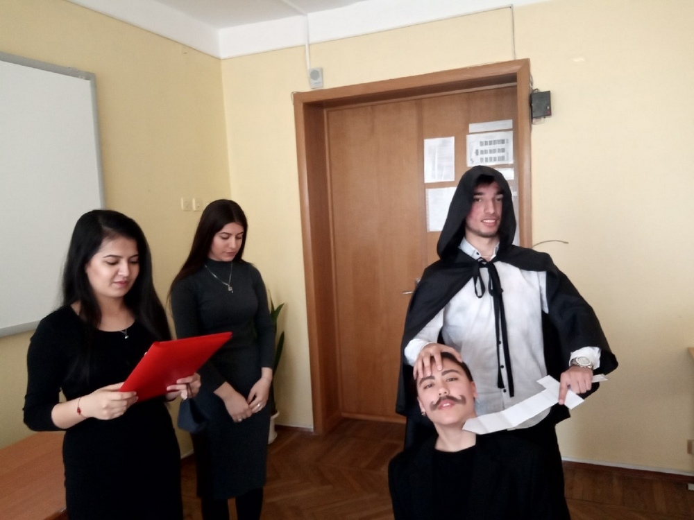 На представлении присутствовали студенты разных курсов, а также старший преподаватель кафедры ИЯ и МПИЯ Гуцко Ирина Николаевна, которая внесла огромный вклад в развитие и создание образов литературных героев.
