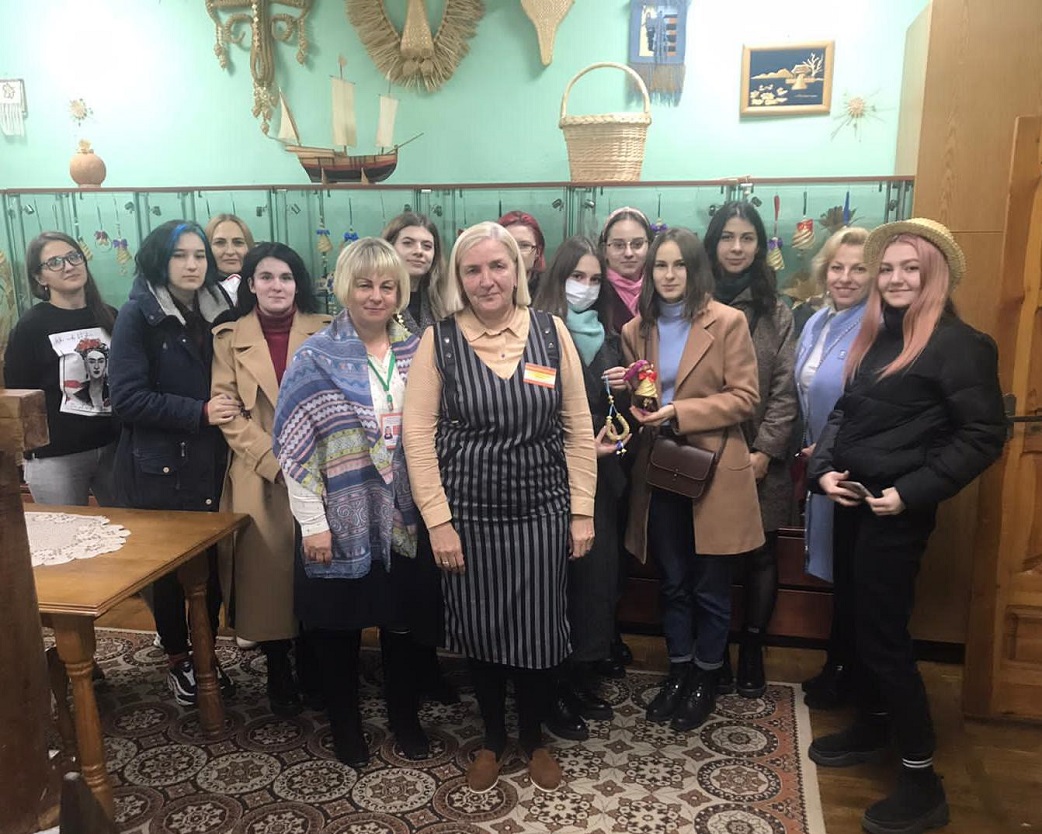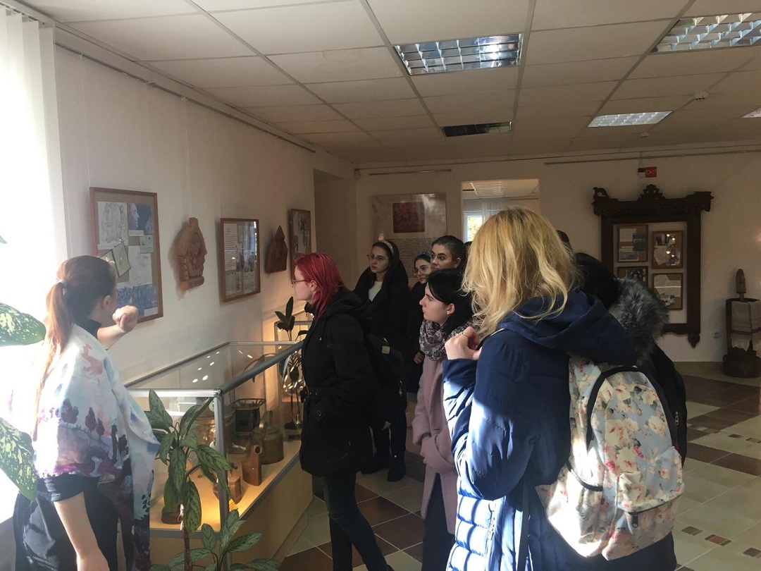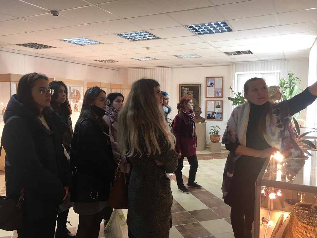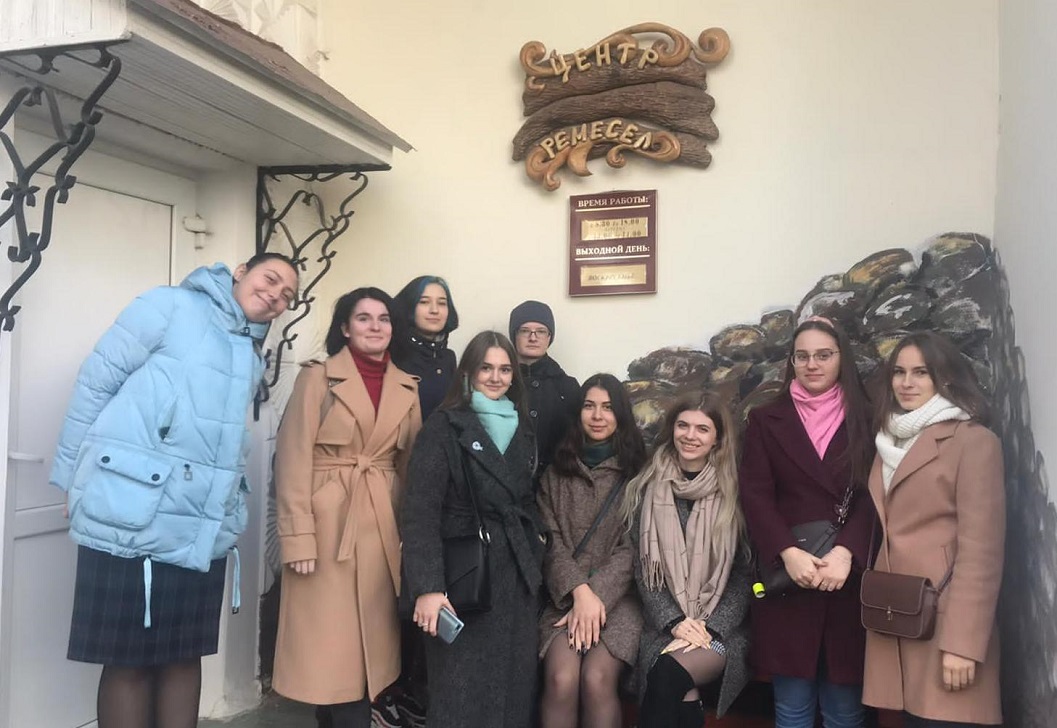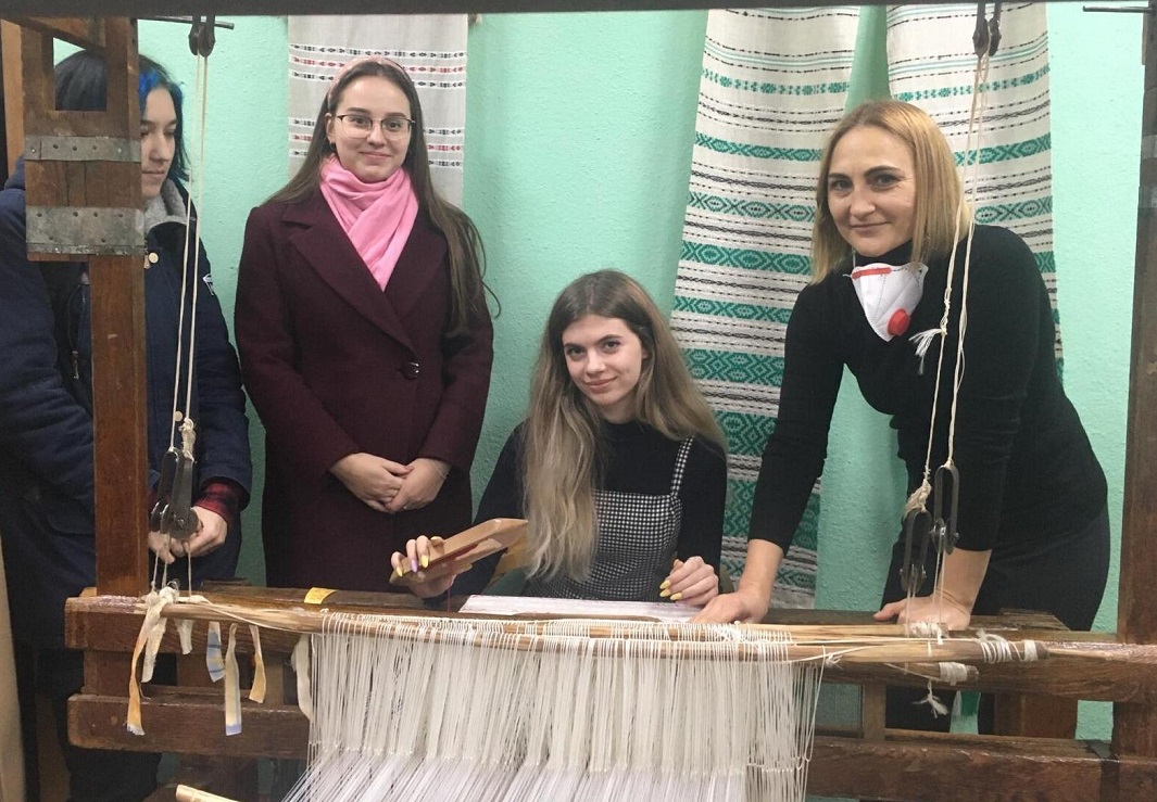 Вторая экскурсия состоялась в Мозырском центре национальных культур и ремесел. Директор этого уникального учреждения, Наталья Адамовна Хорошкевич, ознакомила нас с историей центра и основными видами деятельности мастеров центра ремесел. Наши студенты с большим интересом познакомились с экспозицией декоративных изделий, выполненных в традиционных техниках белорусского декоративно-прикладного творчества. Особое внимание студентов привлекли проведенные сотрудниками центра мастер-классы по ткачеству на старинном ткацком станке, соломоплетению и изготовлению гобеленов, в ходе которых мастера с радостью делились с нами своими секретами в области заготовки, подготовки сырья и материалов, а также технологии изготовления изделий. Подобные встречи с творческими людьми, профессионалами своего дела, которые не только сохраняют, но развивают традиционные ремесла своего региона, способствуют приобщению молодежи к традиционной народной культуре, прививают любовь к ремесленным традициям Полесского края.