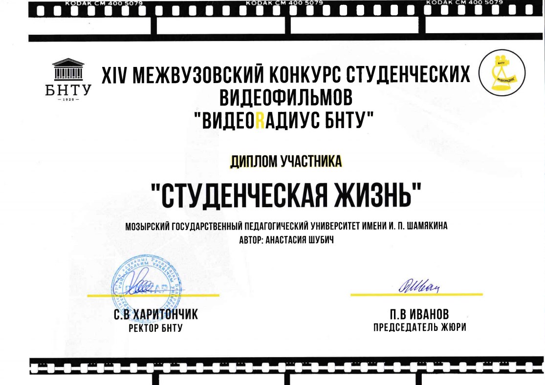 В этом году от нашего университета впервые приняла участие в конкурсе студентка 2 курса факультета дошкольного и начального образования Анастасия Шубич. Был представлен видеоролик «Студенческая жизнь».