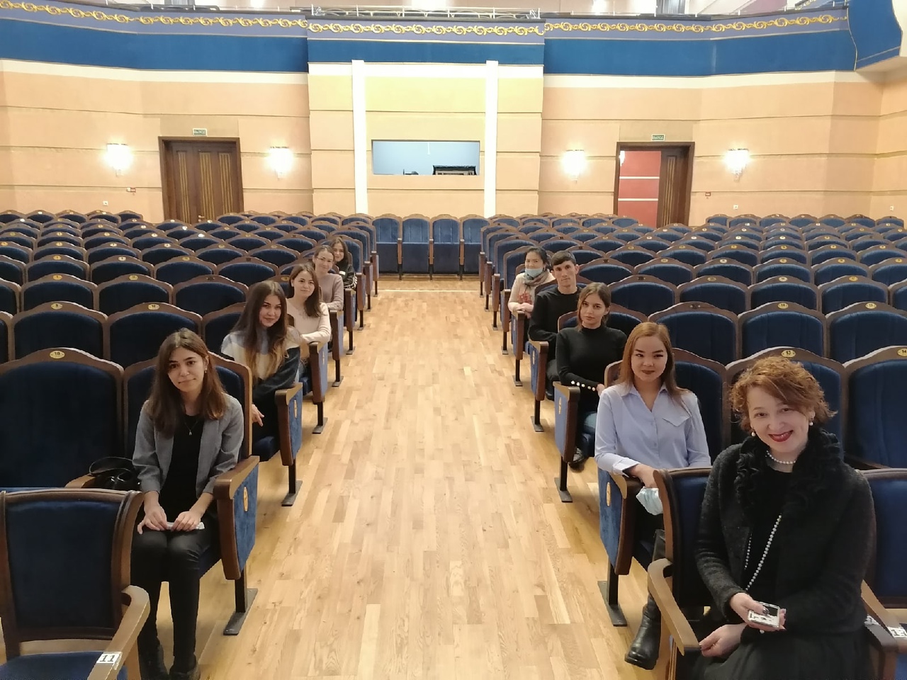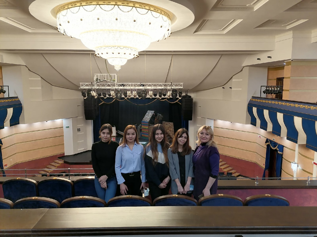 На протяжении экскурсии студенты смогли сфотографироваться в зрительном зале, возле сцены, где проходила репетиция спектакля.