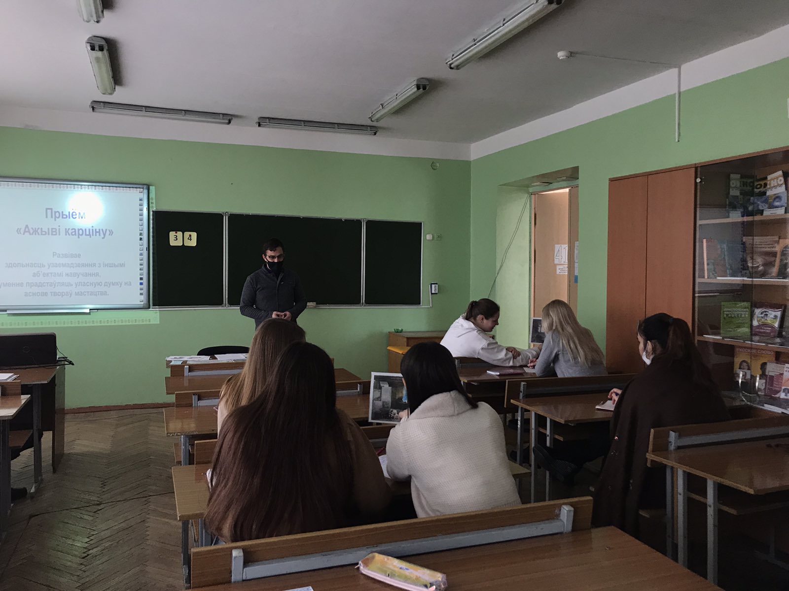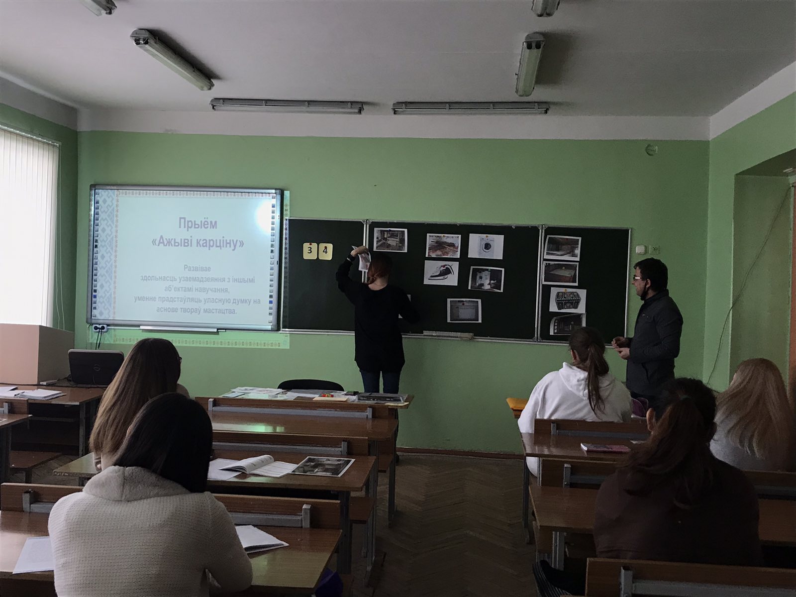 “Работа над мастацкім тэкстам як сродак фарміравання камунікатыўнай кампетэнцыі вучняў (на прыкладзе аповесці “Гандлярка і паэт” І. Шамякіна)” (Е.В. Есис, учитель белорусского языка и литературы высшей категории ГУО «Средняя школа № 16 г. Мозыря»);