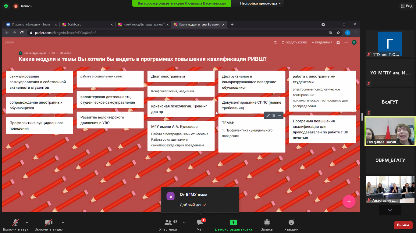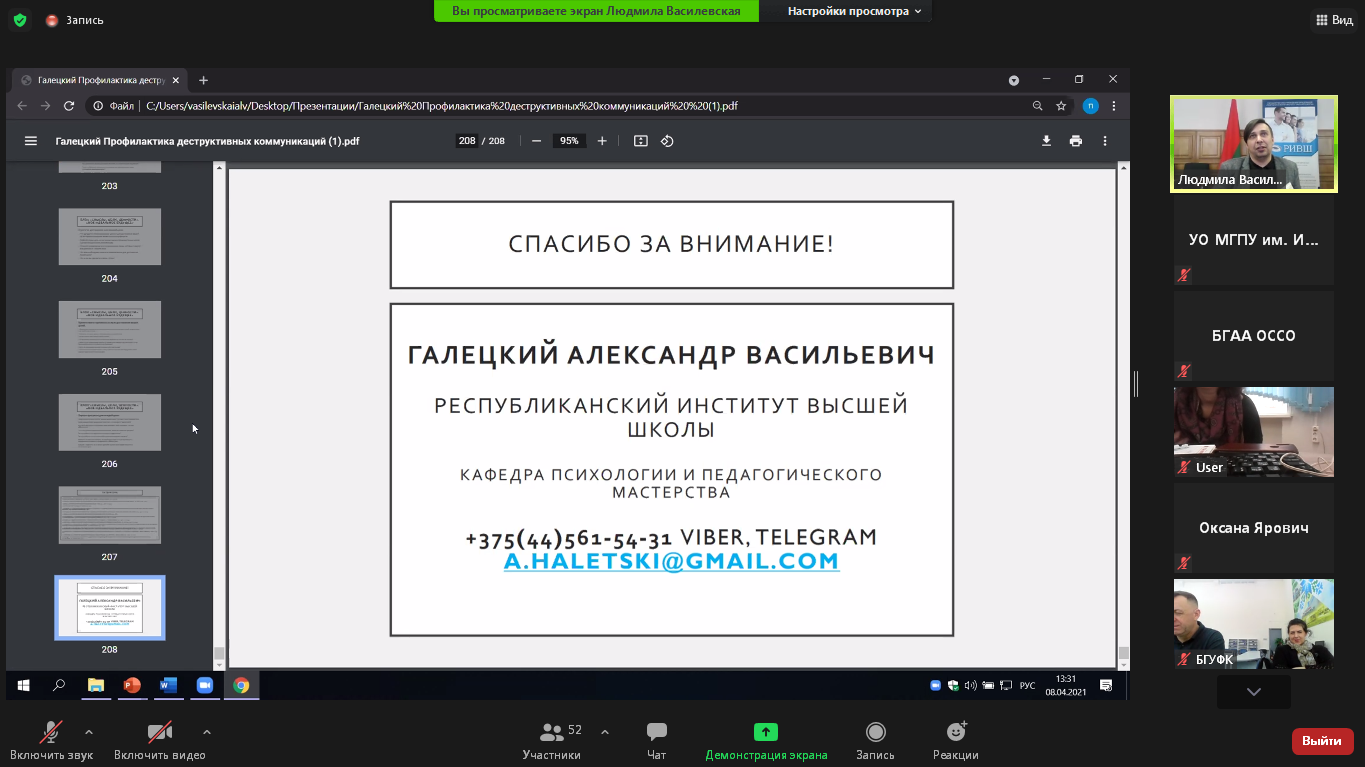 Семеняко Е.Н., начальник информационно-методического отдела Республиканского центра психологической помощи БГПУ;