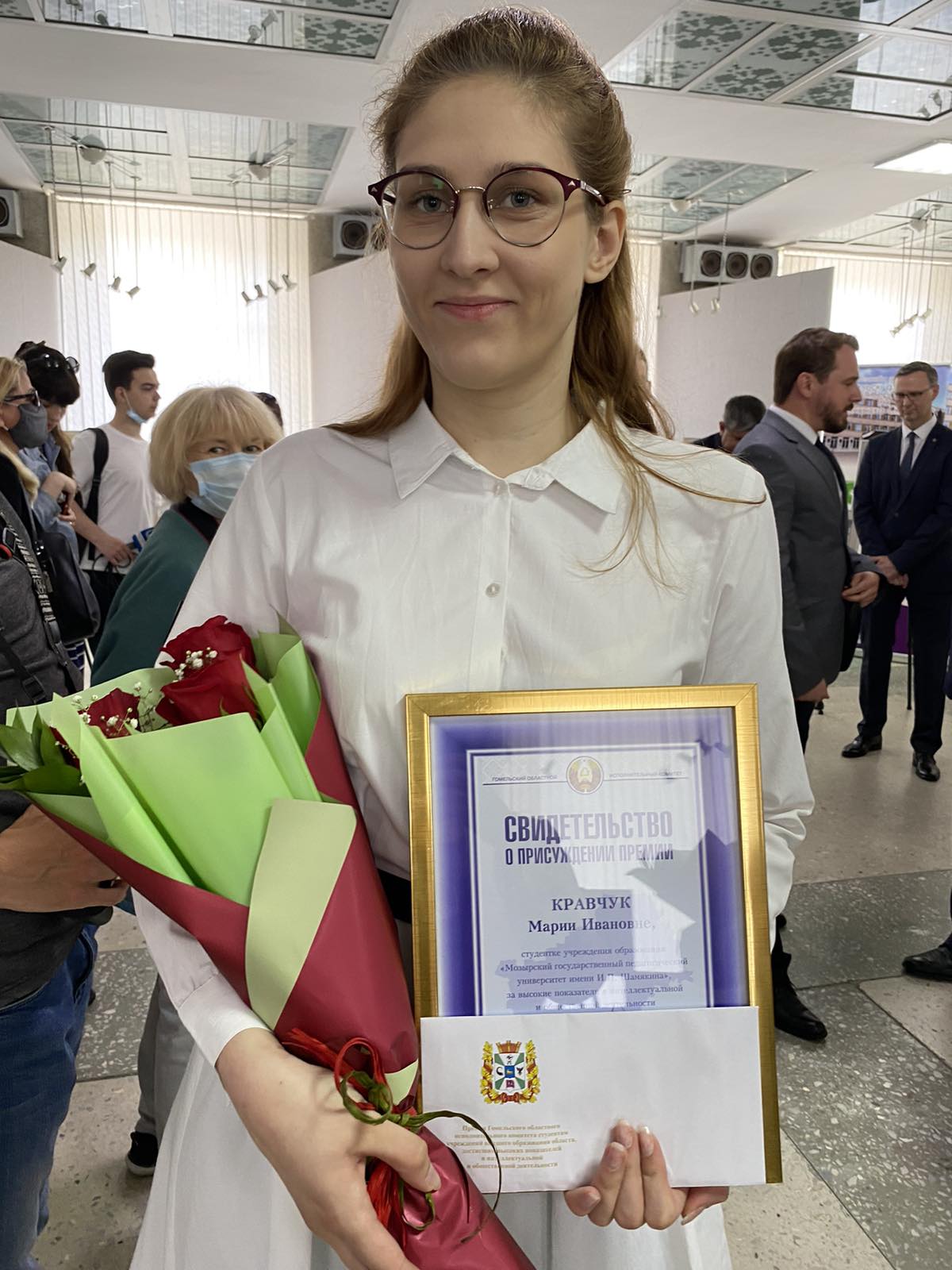 Премия Гомельского областного исполнительного комитета Подробности Опубликовано 09.06.2021 08:23 Желаем Марии творческих и научных побед! Куратор группы Н.Г. Точило