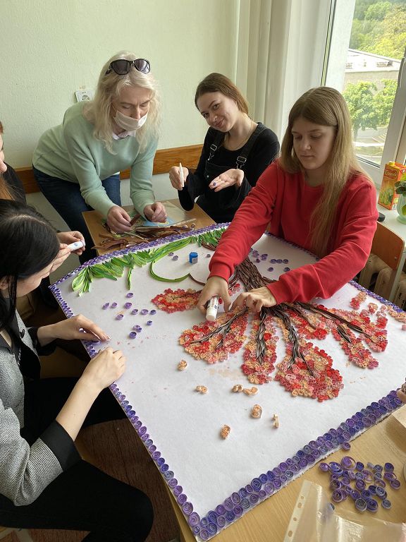 Мастерская. Девочки делали дерево семьи – дерево любви в технике квиллинг.