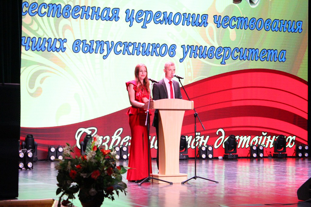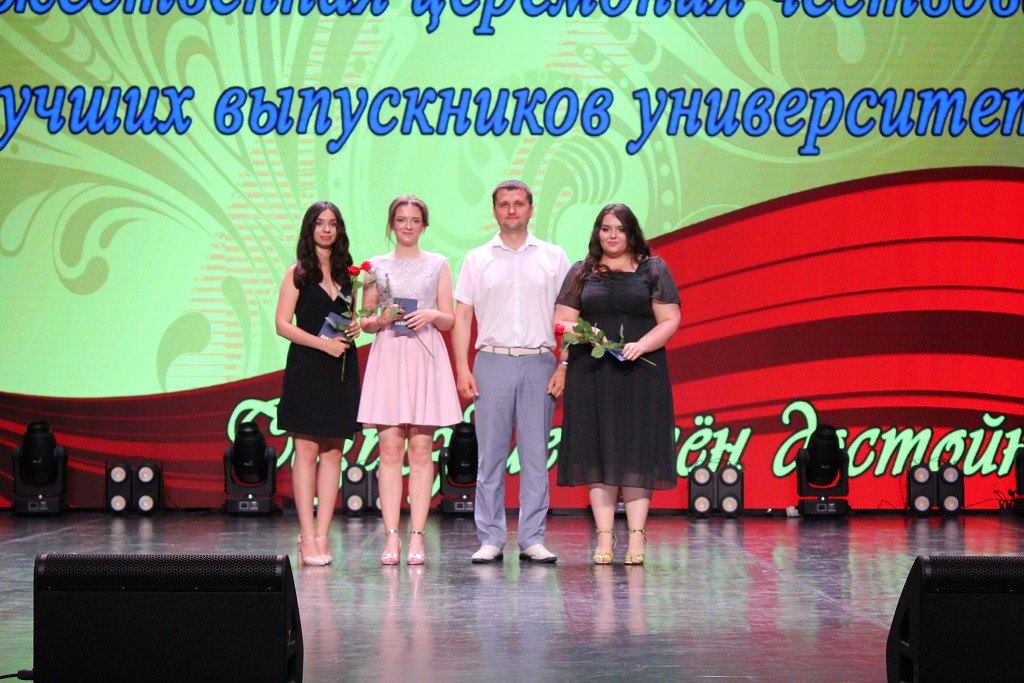 В ходе мероприятия проректор по воспитательной работе Сергей Николаевич Щур выразил добрые слова благодарности выпускникам и пожелал, чтобы они никогда не забывали своих учителей, а также тех, с кем были связаны их студенческие годы. Всего в этом году было вручено 33 диплома с отличием.