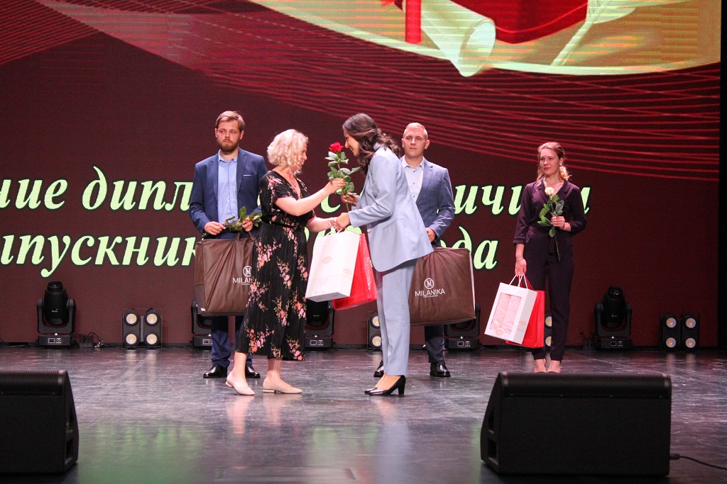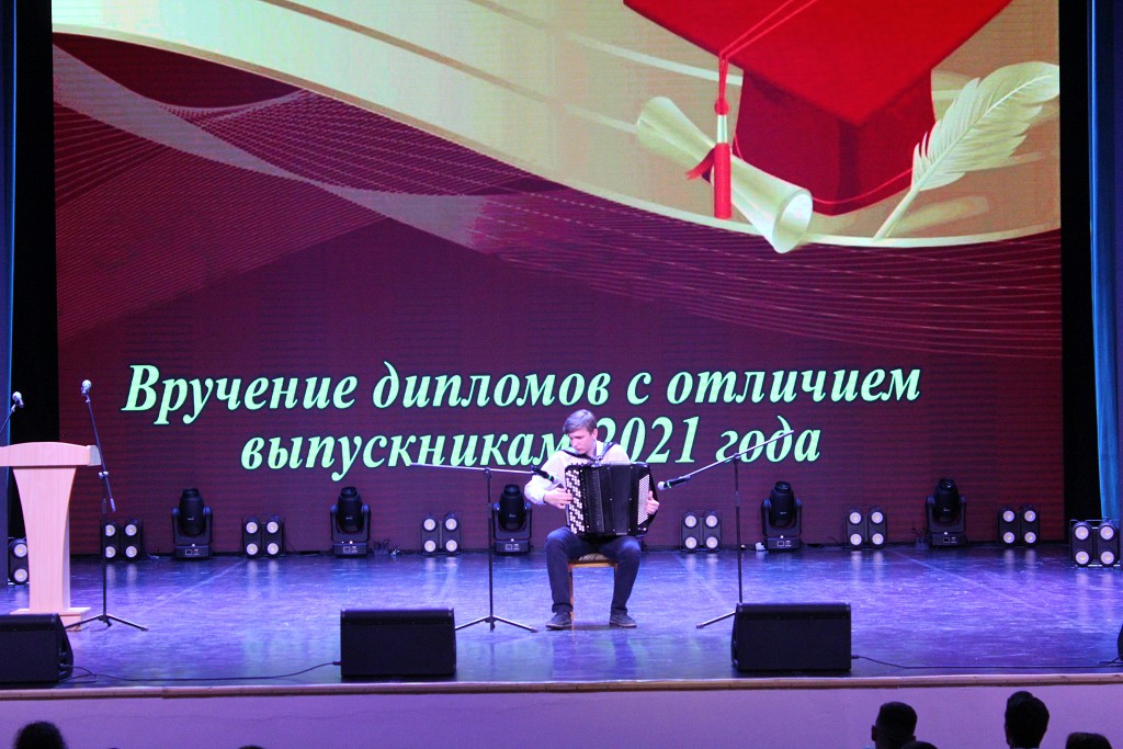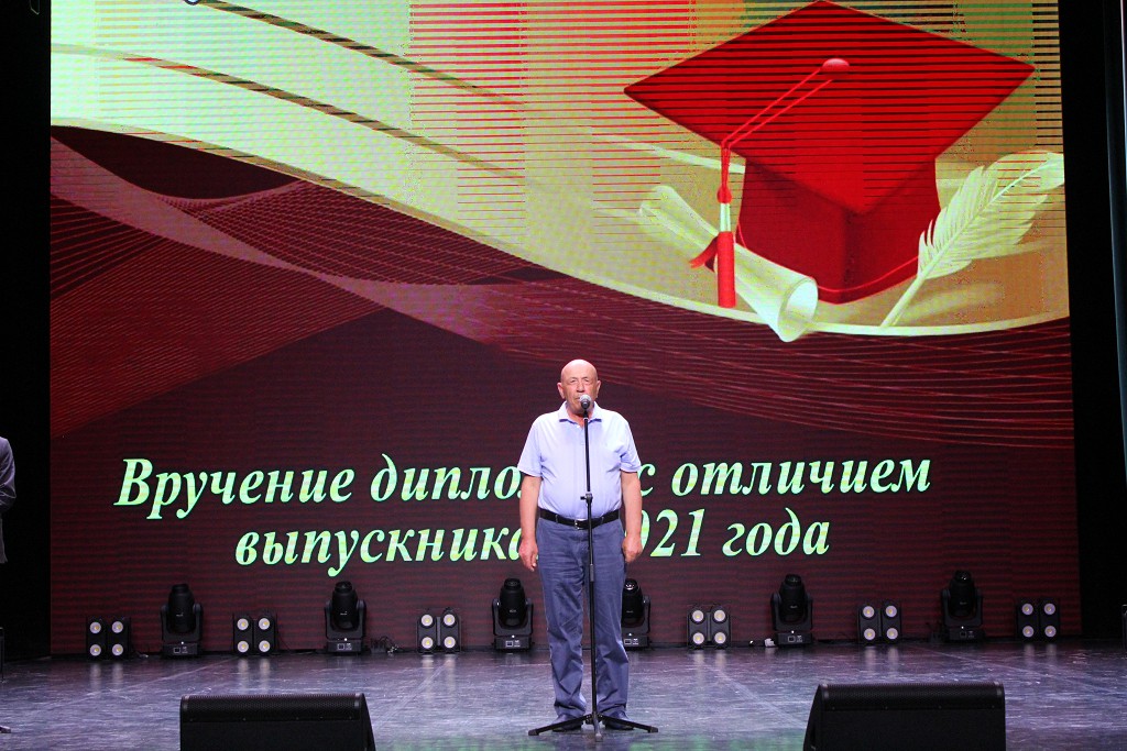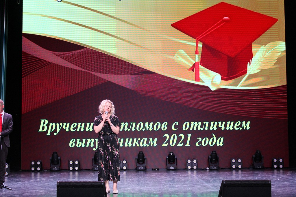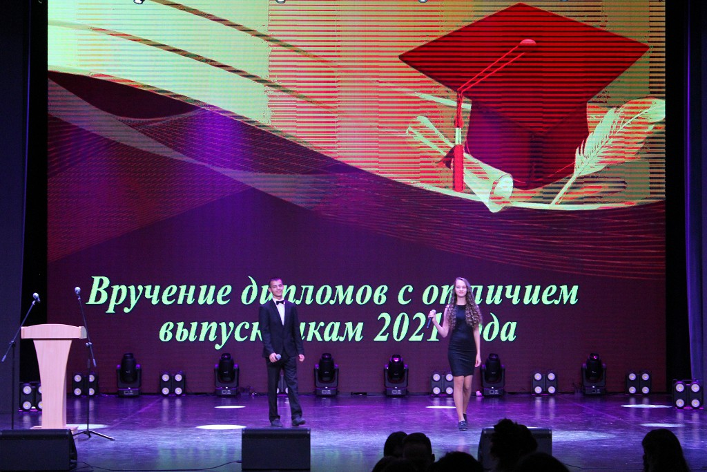 Напутственные слова в адрес выпускников прозвучали от ректора университета Валерия Николаевича Навныко. Ректор пожелал выпускникам 2021 года сохранять верность себе, своему жизненному, человеческому и профессиональному долгу, а также вручил дипломы с отличием.